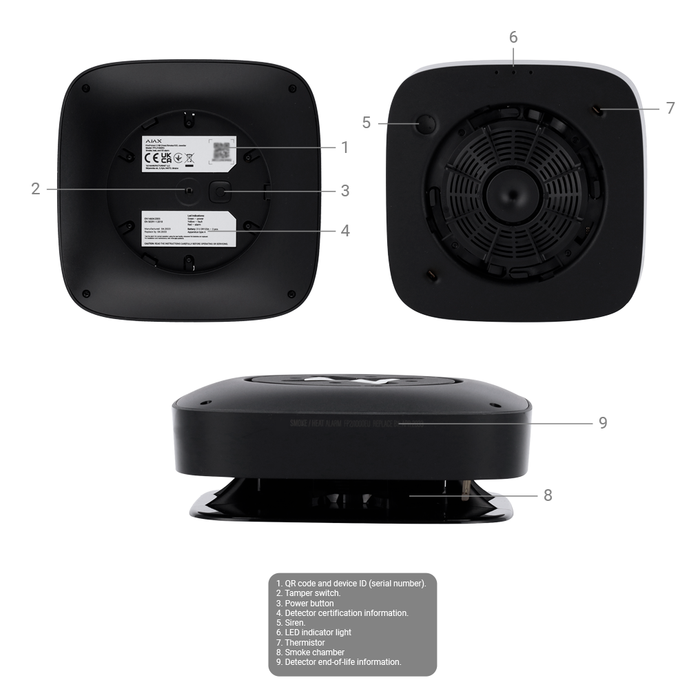 Home Detector Incêndio/Fumo/CO Sensor de temperatura e detector de fumaça, preto-Ajax AJ-FIREPROTECT2-HS-SB-B Sensor de temperatura e detector de fumaça, preto-Ajax AJ-FIREPROTECT2-HS-SB-B SKU: AJ-FIREPROTECT2-HS-SB-B 85,30 € 89,79 € Desconto de %. IVA incluído. Comprar Contactar Adicionar à wishlist Detector de fumoSensor de temperaturaSem fios 868 MHz JewellerSirene 85 dB incorporadaCertificado EN 14604Fonte de alimentação 2 baterias de lítio não substituíveisEspecificaçõesMarca:AjaxSensores:Sensor térmico e termovelocimétricoFrequência:868 MHz JewellerDistância de transmissão:? 1700 m em espaço abertoDetecções:Fumo, aumento rápido da temperatura e umbral de temperaturaDetecção do umbral de temperatura:+64°CFuncionamento:Ligado aos Hubs Ajax ou como um detector autônomoAlarme:Sirene incorporada 85 dBSilenciar o alarme:Através do botão Testar/Silêncio ou na aplicação AjaxIndicador LED:Vermelho: indicação de alarmes de incêndioFunções adicionais:Botão no painel frontal do detetorCertificado:EN14604Alimentação:2 baterias de lítio não substituíveis (duração até 10 anos)Compatibilidade:Hub Plus, Hub 2 (2G y 4G), Hub 2 Plus, Hub Hybrid (2G y 4G), ReX y ReX 2Temp. funcionamento:0º C ~ +50º CDimensões / Peso:124 (Al) x 124 (An) x 45 (Fo) mm / 272.5 gMaterial de acabamento:Plástico ABSCor:Preto Marca Ajax Partilhar