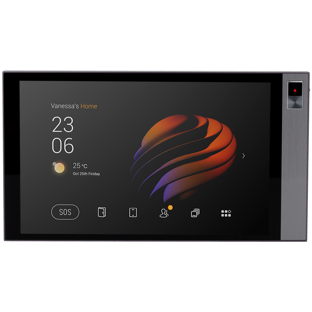 Indicada para apartamentos e moradias que pretendem centralizar intercomunicação, controlo de acessos e domótica. Permite atender chamadas do painel, abrir portas/portões, visualizar câmaras compatíveis e orquestrar cenas inteligentes com KNX, ZigBee e Bluetooth. Gestão remota via Cloud e apps móveis.