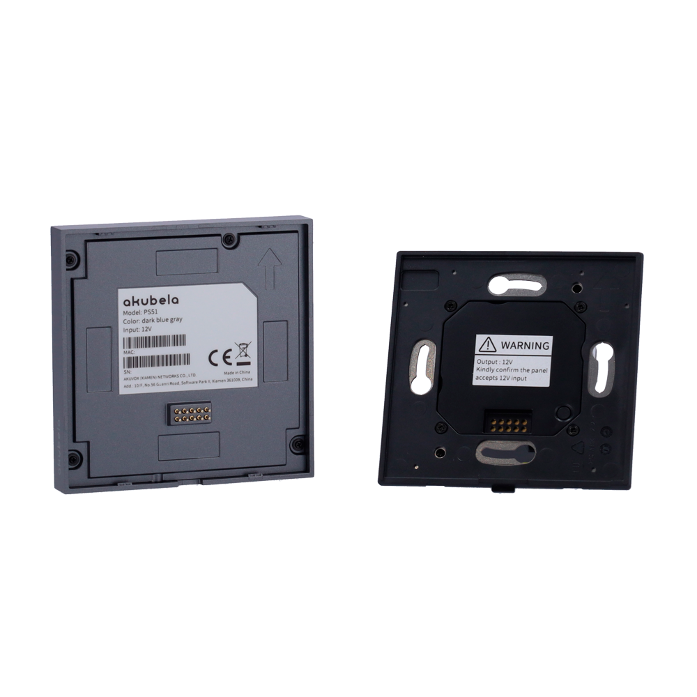 Monitor Akubela de 4" com Android 10, integração KNX e 2 relés para automação.