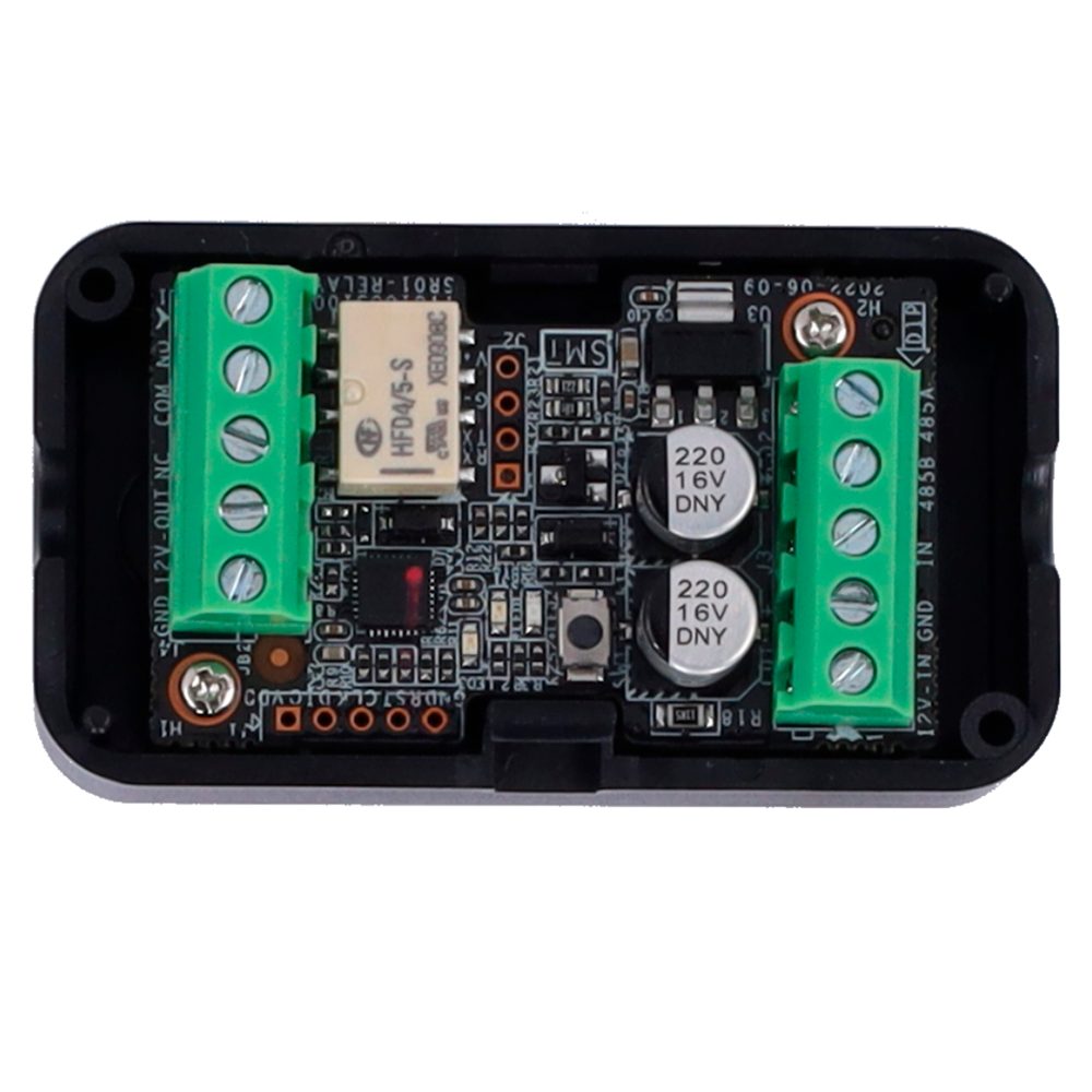 Saída de relé NO/NC para controlo de fechaduras elétricas.