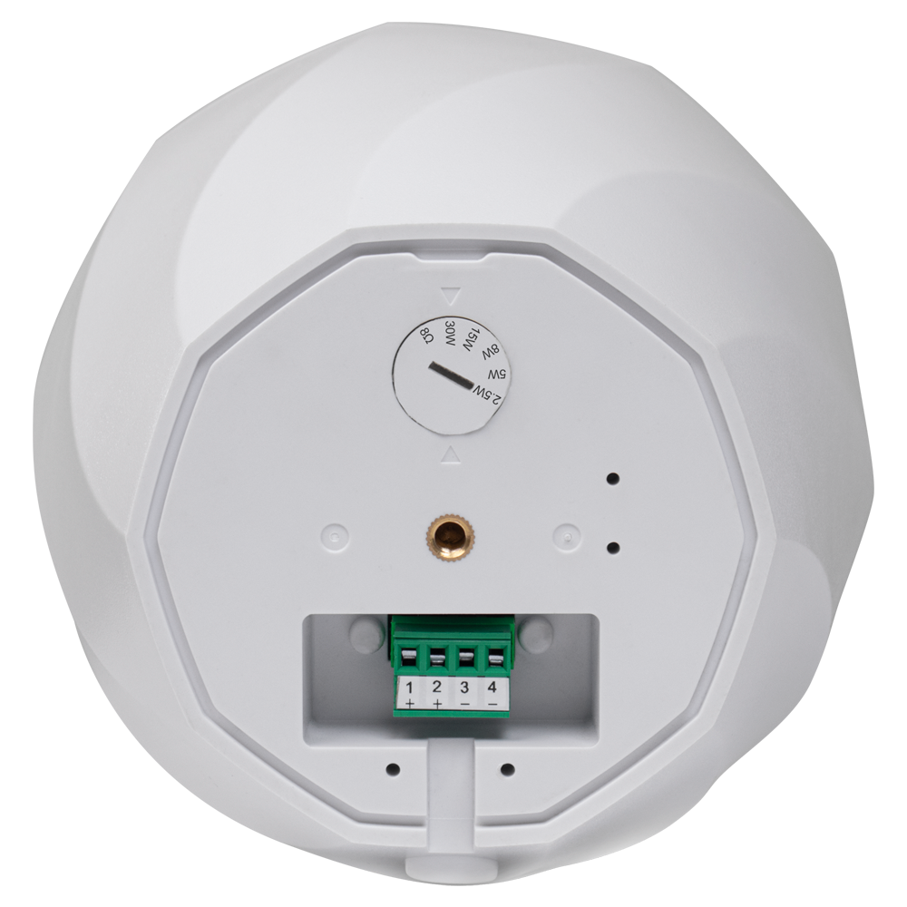 Múltiplas opções de potência para diferentes necessidades de sonorização (1.25/2.5/4/8/15W a 70V e 2.5/5/8/15/30W a 100V).