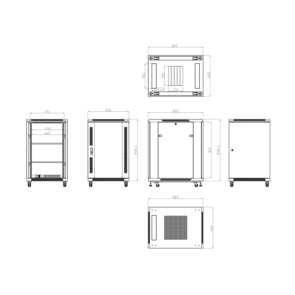 O Bastidor de Chão 18U (RACK-18UFN-8D) é a estrutura central ideal para redes de média dimensão. Com uma altura de aproximadamente 1 metro e uma profundidade de 800mm, oferece o espaço necessário para alojar servidores, sistemas de armazenamento (NAS) e UPS de rack que não cabem em bastidores murais.