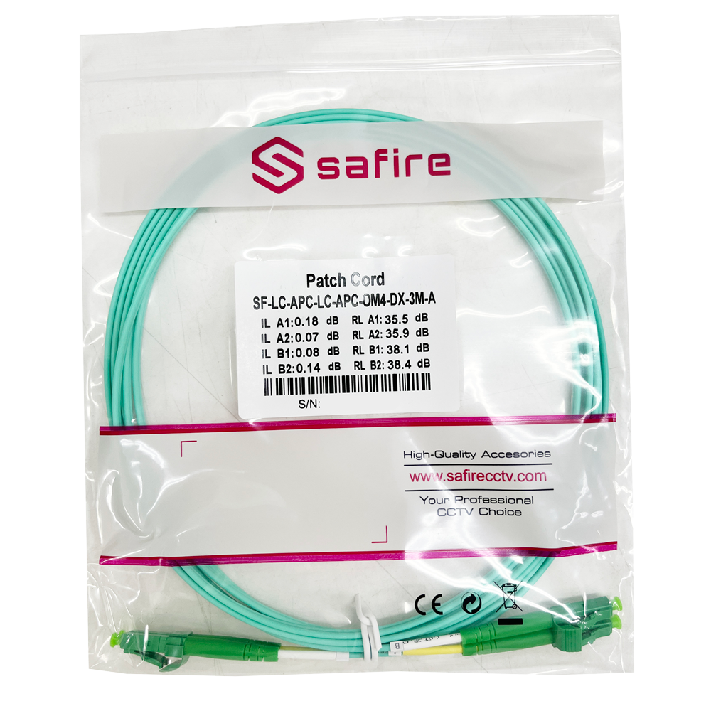 O cabo de ligação de fibra SF-LC-APC-LC-APC-OM4-DX-3M-A da Safire é ideal para redes de telecomunicações e centros de dados, onde a precisão e a baixa perda de sinal são cruciais. Com conectores APC (Angled Physical Contact), este cabo oferece um desempenho superior em termos de retorno de sinal e estabilidade, sendo perfeito para aplicações FTTx, sistemas de TV por cabo, redes de alta velocidade e equipamentos de medição. O design compacto do conector LC permite uma maior densidade de ligação em painéis e racks, otimizando o espaço e garantindo uma transmissão fiável.