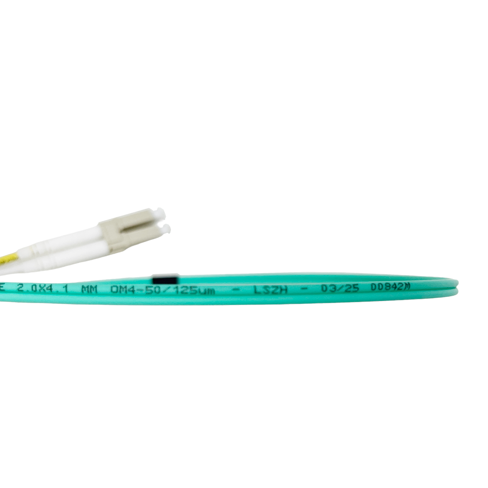 Fibra OM4 que oferece maior largura de banda e fiabilidade na transmissão de dados.