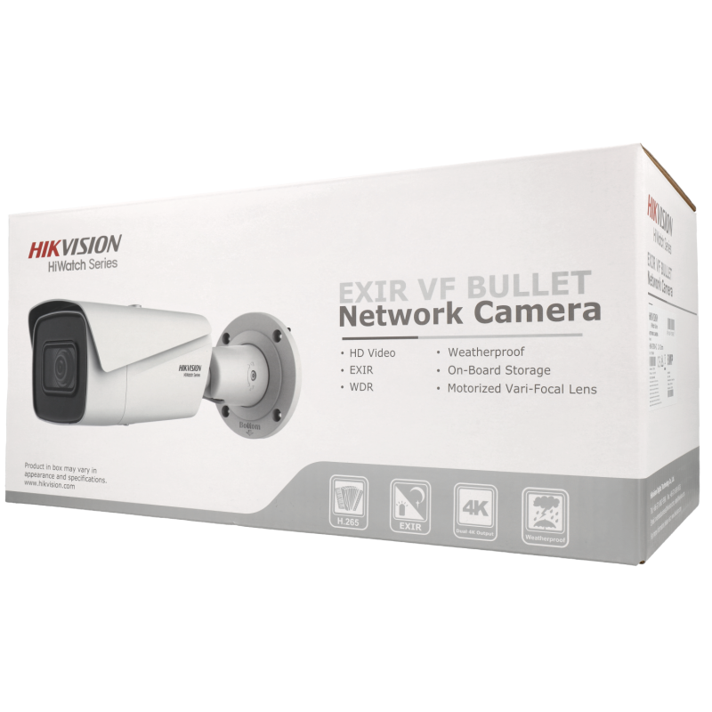 Home Bullet Câmara com fios (PoE) Bullet Branca 8mpx 2.8mm 50m IP67 - Hikvision HWI-B780H-Z Câmara com fios (PoE) Bullet Branca 8mpx 2.8mm 50m IP67 - Hikvision HWI-B780H-Z SKU: HWI-B780H-Z 464,08 € Desconto de %. IVA incluído. Comprar Contactar Adicionar à wishlist Câmara IP 4K Hikvision1/2.5" Progressive Scan CMOSCompressão H.265+ / H.265Lente motorizada 2.8~12 mm AutofocusEXIR IR LEDs Alcance 50 mWDR | 3DNR | BLC | IP67 | SD SlotEspecificaçõesMarca:HikvisionGama:HiWatch SeriesSensor de imagem:1/2.5" Progressive Scan CMOSResolução máxima:8 Megapixel (3840x2160)Taxa Main Stream:3840x2160 (1 ~ 12.5 FPS), 3072x1728 (1 ~ 20 FPS), 2560x1440 / 1920x1080 / 1280x720 (1 ~ 25 FPS)Taxa Extra Stream:640x480 / 640x360 / 320x240 (1 ~ 25 FPS)Compressão:H.265+/H.265/H.264+/H.264Bitrate:32 Kbps ~ 16 MbpsLente:2.8 mm ~ 12 mm Motorizada AutofocusIluminação mínima:Cor 0.01 Lux @ F1.2 | Cor 0.018 Lux @ F1.6Iluminação infravermelha:0 Lux / LEDs IR (50 m)Melhoras de imagem:WDR (120dB), BLC, 3D-DNR, AGC, Motion detection, Face detectionDia / Noite:Filtro mecânico ICR amovívelAlarmes:Não dispõeÁudio:Não dispõeInterface de rede:Ethernet 10/100 BaseTArmazenagem interna:Entalhe para Cartão MicroSD, Max 128 GBAcesso remoto:Navegador Web, App Smartphone Hik-Connect e Software PC IVMS 4200Interoperabilidade:ONVIF, PSIA, CGI, ISAPIAlimentação:DC 12 V / 1200 mA, PoE IEEE802.3atGrau de protecção:Impermeável IP67Material:MetalTemp. funcionamento:-30º C ~ +50º CDimensões:295 mm (Fo) x 102.4 (Ø) mmPeso:1335 g Marca Hikvision Características Partilhar