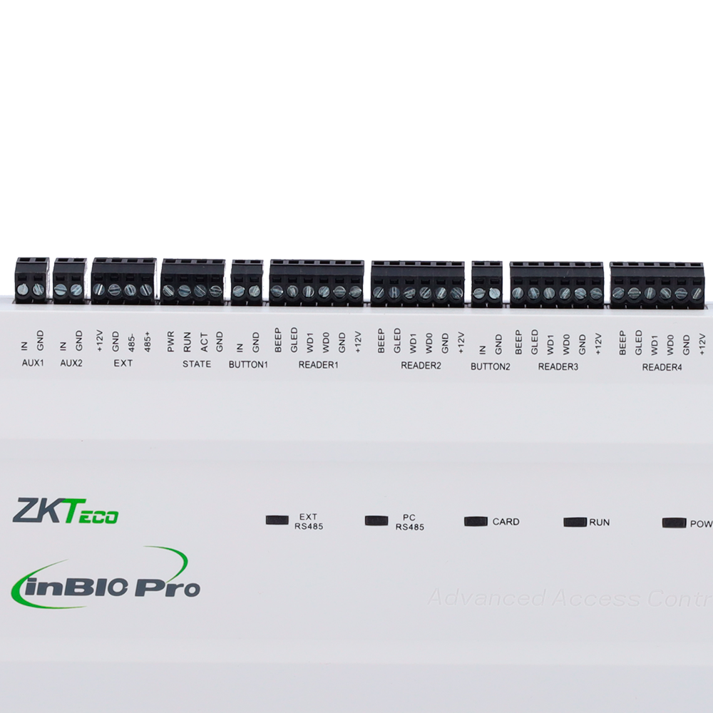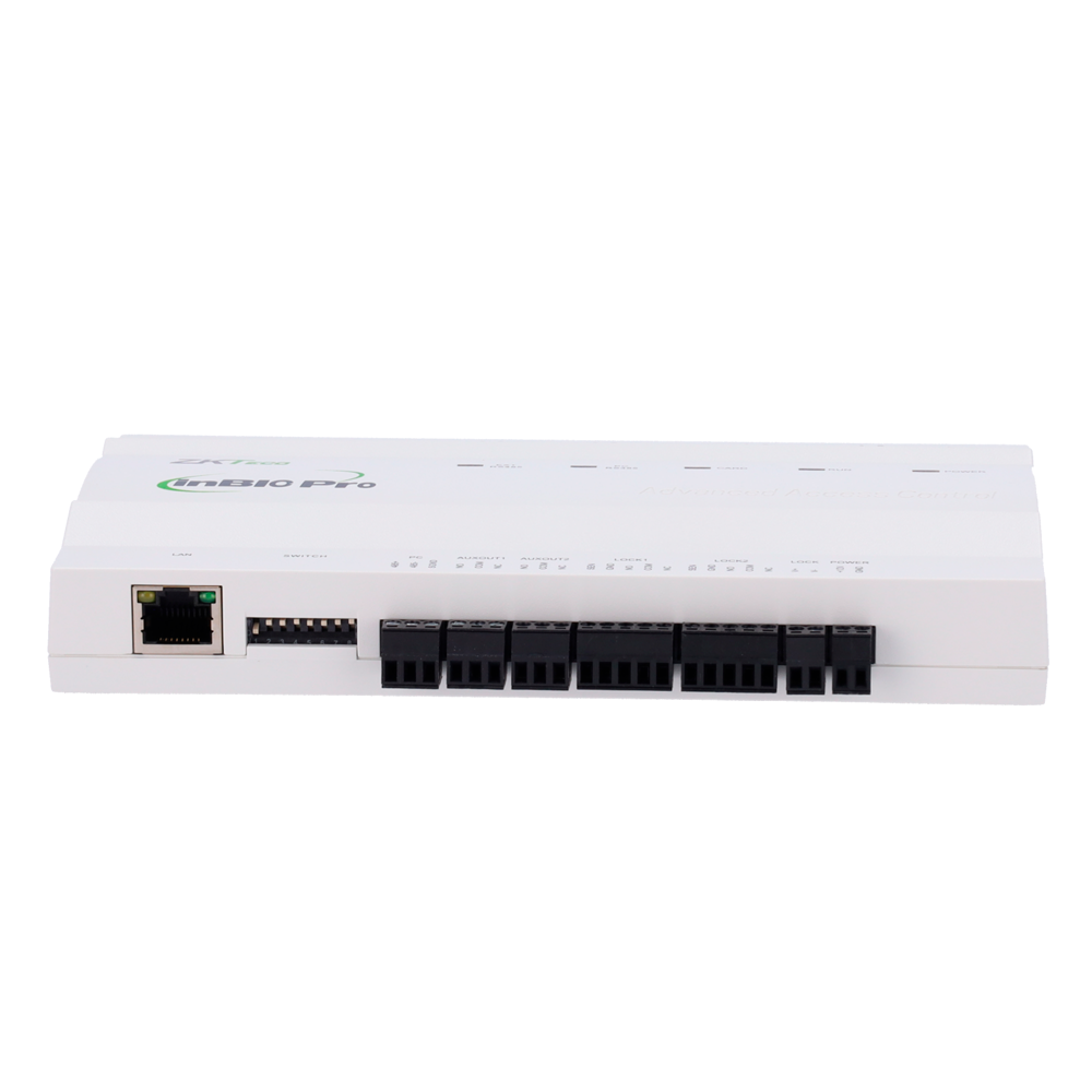 O ZKTeco INBIO260PRO é um controlador de acesso biométrico profissional, ideal para proteger perímetros e portões. Este dispositivo fica instalado num local seguro e oculto, permitindo a ligação de leitores (colocados no local visível) para identificar utilizadores, e a ligação a fechaduras eletrónicas, que são ativadas após a autenticação.