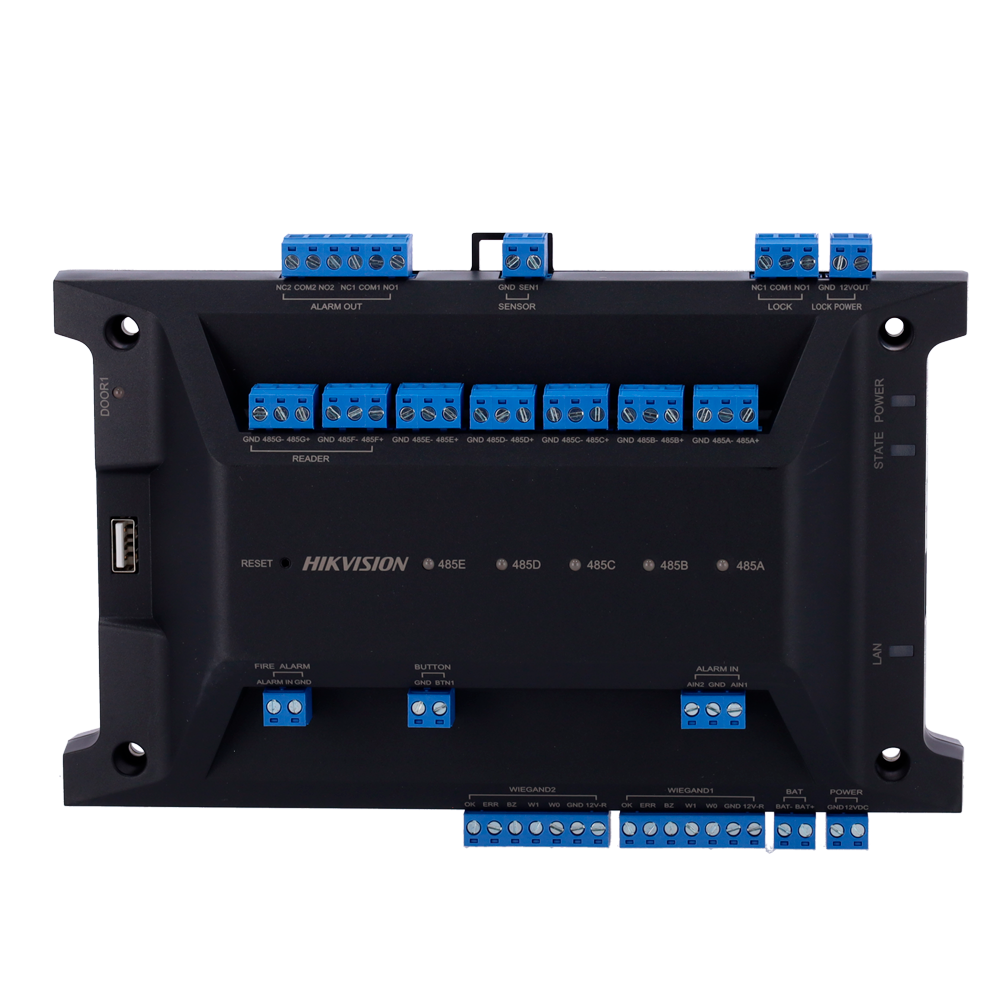 O Hikvision DS-K2701X(P) é um controlador de acesso avançado, ideal para proteger perímetros e portões. Este dispositivo, instalado em áreas seguras, permite a ligação de leitores (Wiegand, RS485/OSDP) e fechaduras eletrónicas. Compatível com leitores biométricos e com protocolos Wiegand e OSDP, oferece uma solução flexível e segura para controlar o acesso.