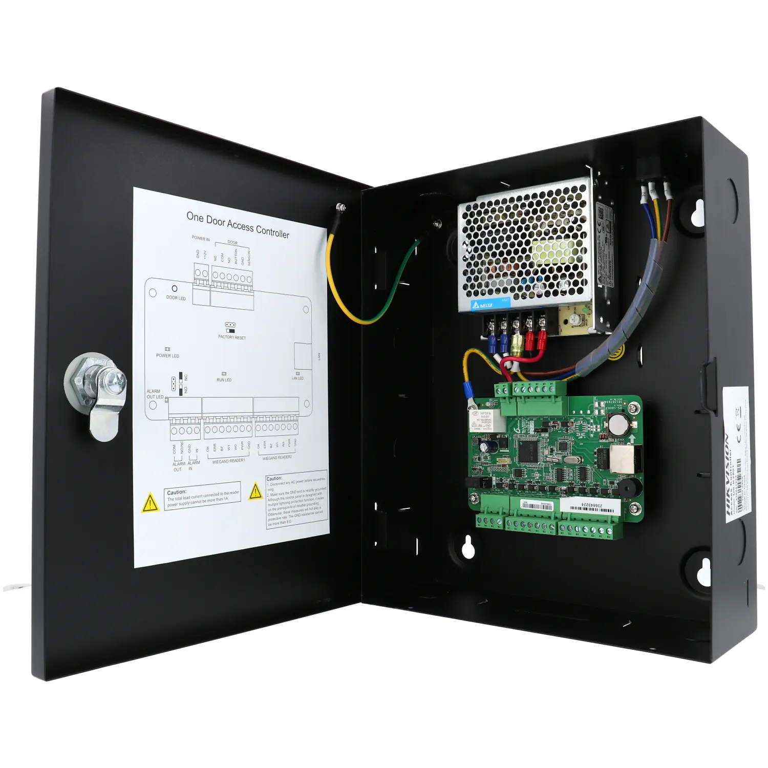 A controladora de acesso Hikvision DS-K2801 é uma solução profissional para proteger perímetros e portões. Ideal para instalações seguras, permite a ligação de leitores (Wiegand) e fechaduras eletrónicas, controlando o acesso de utilizadores de forma eficiente.