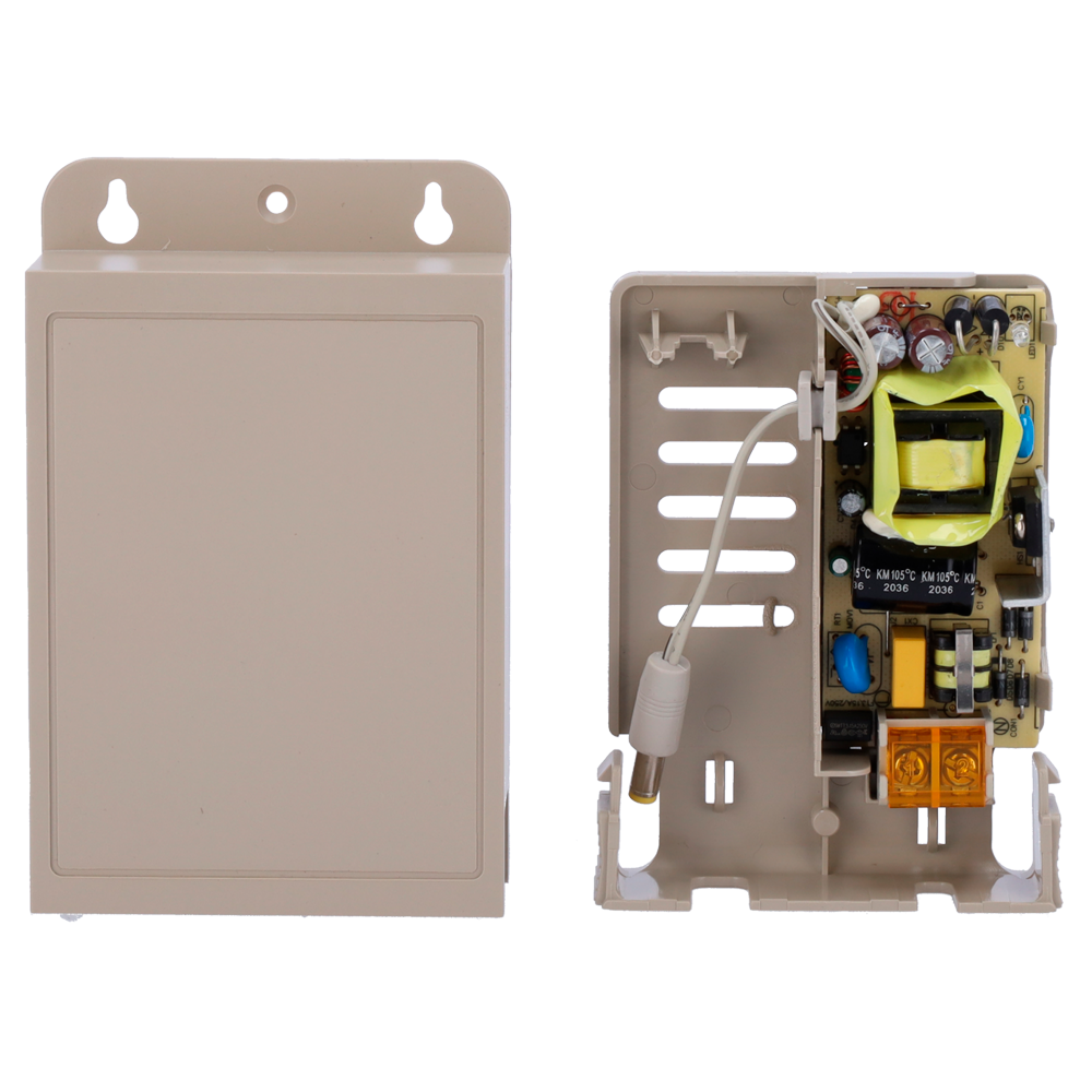 Fonte de 12V 2A para exterior, com proteção IP23 contra chuva e pó, indicada para alimentar câmaras e dispositivos em ambientes expostos.