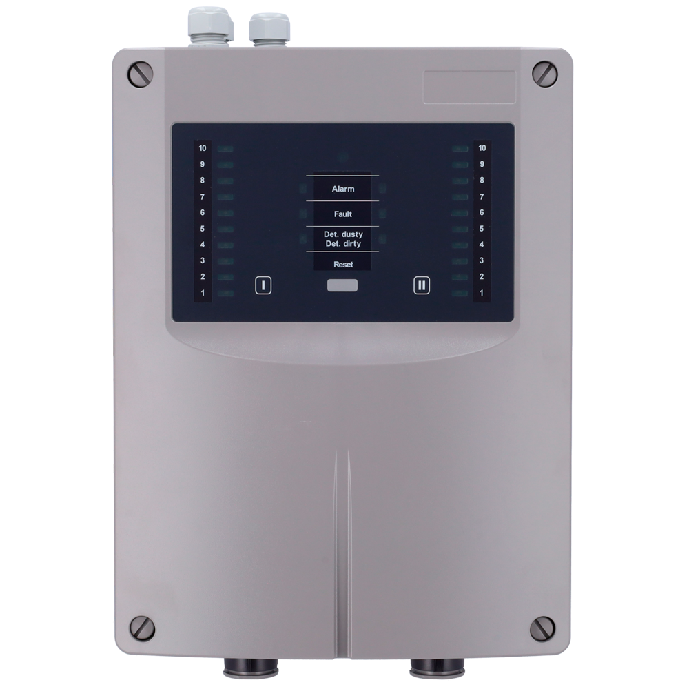 Na versão de 2 canais 3 (1alarma I e II c/u, 1fallo)