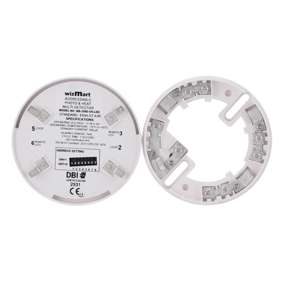 O detetor NB358D-SHL da WIZMART combina sensores fotoelétricos de fumo e sensores de temperatura, permitindo a deteção precoce e fiável de incêndios de propagação rápida ou de combustão lenta. Este detetor analógico e endereçável é ideal para sistemas de alarme de incêndio que requerem alta sensibilidade e imunidade a falsos alarmes. Inclui LEDs duplos para visibilidade a 360 graus.