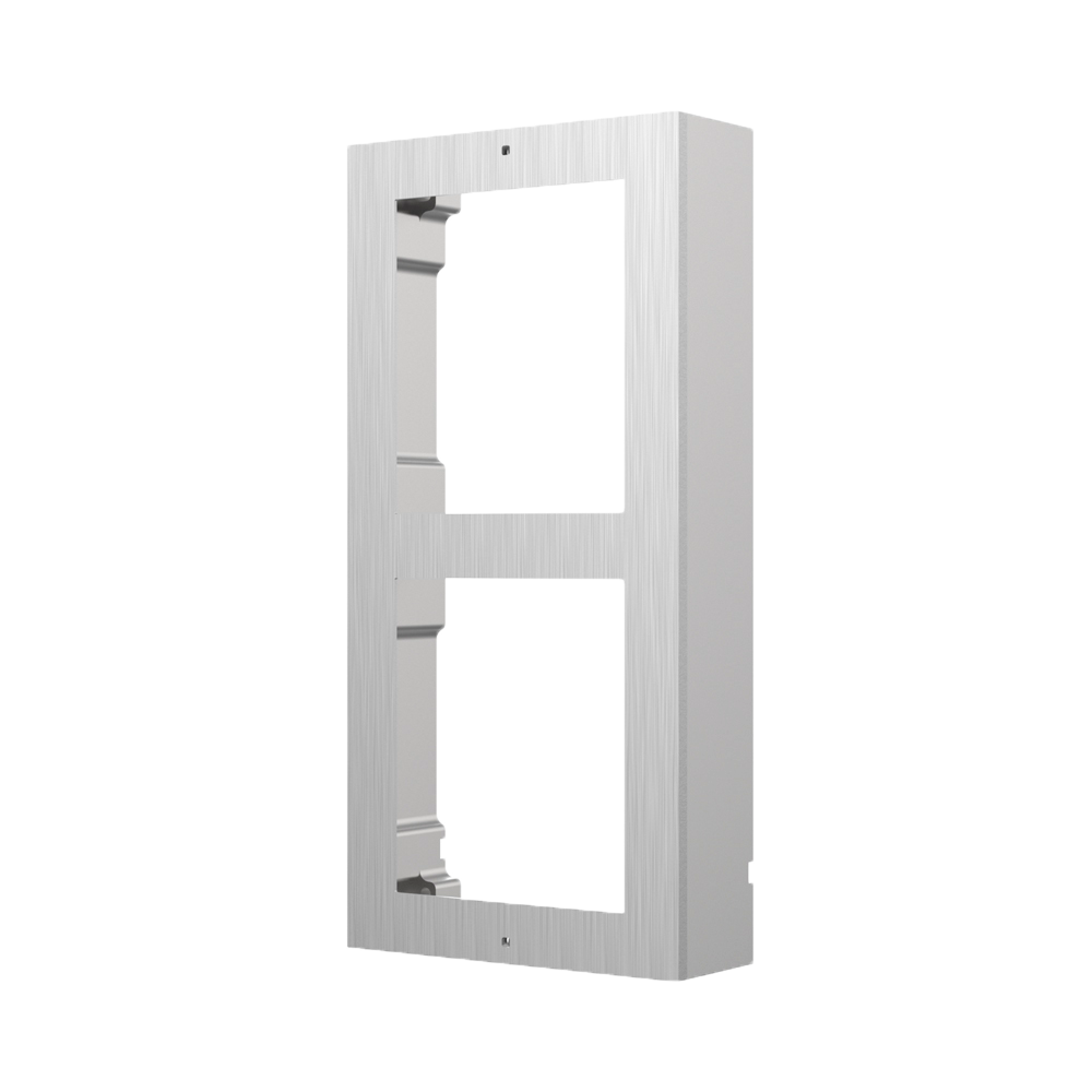 Acessorio para videoporteiro Hikvision suporte de superficie em aluminio de aviacao e aco inoxidavel, para 2 modulos do videoporteiro modular Hikvision.