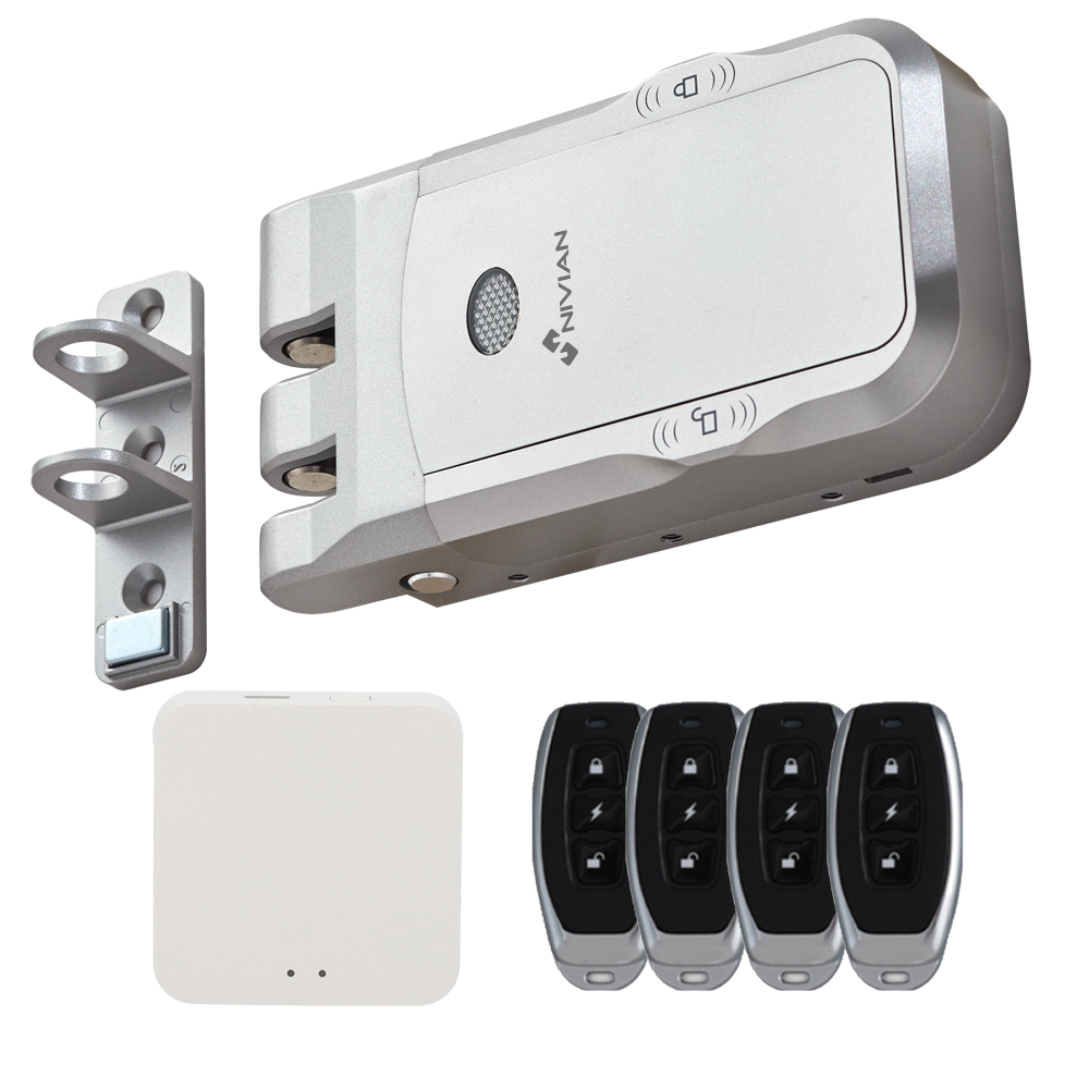 A fechadura invisível Wi-Fi Nivian NVS-SMARTBOLT oferece uma solução de segurança avançada e conveniente para a sua casa ou escritório. Com abertura por comando à distância e aplicação móvel, esta fechadura de instalação à superfície adapta-se a qualquer tipo de porta. Possui um motor duplo para maior fiabilidade e uma bateria dupla, garantindo o funcionamento mesmo em caso de falha de energia. O fecho automático com sensor de porta proporciona ainda mais segurança e tranquilidade.