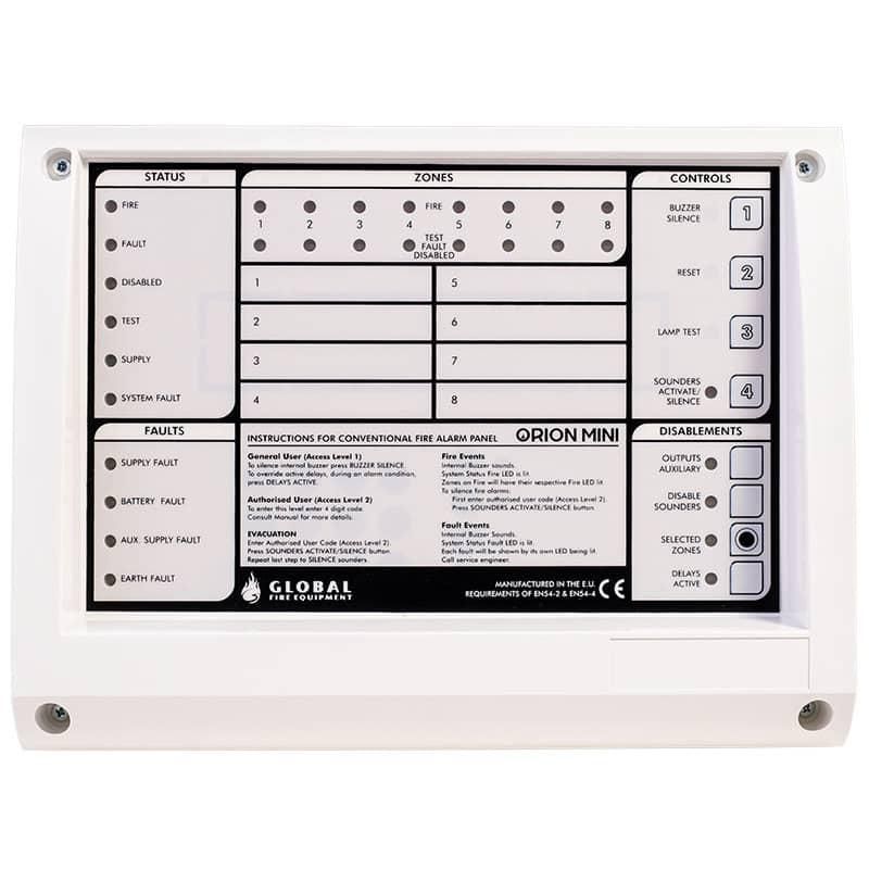 A Global Fire ORION MINI II é uma central de deteção de incêndio convencional de 2 zonas, conhecida pelo seu design moderno e dimensões reduzidas, ideal para instalações onde a discrição é fundamental.