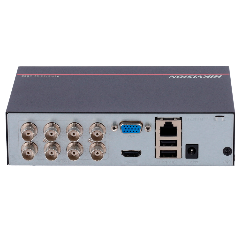O iDS-E08HQHI-XB da Hikvision é um gravador DVR de 8 canais que oferece uma solução de vigilância robusta e eficiente para sua casa ou empresa. Este DVR suporta múltiplos formatos de vídeo (HDTVI, HDCVI, AHD, CVBS e IP), proporcionando flexibilidade na escolha das câmeras. Com a tecnologia AcuSense, o sistema minimiza alarmes falsos, distinguindo eficazmente entre pessoas e veículos.