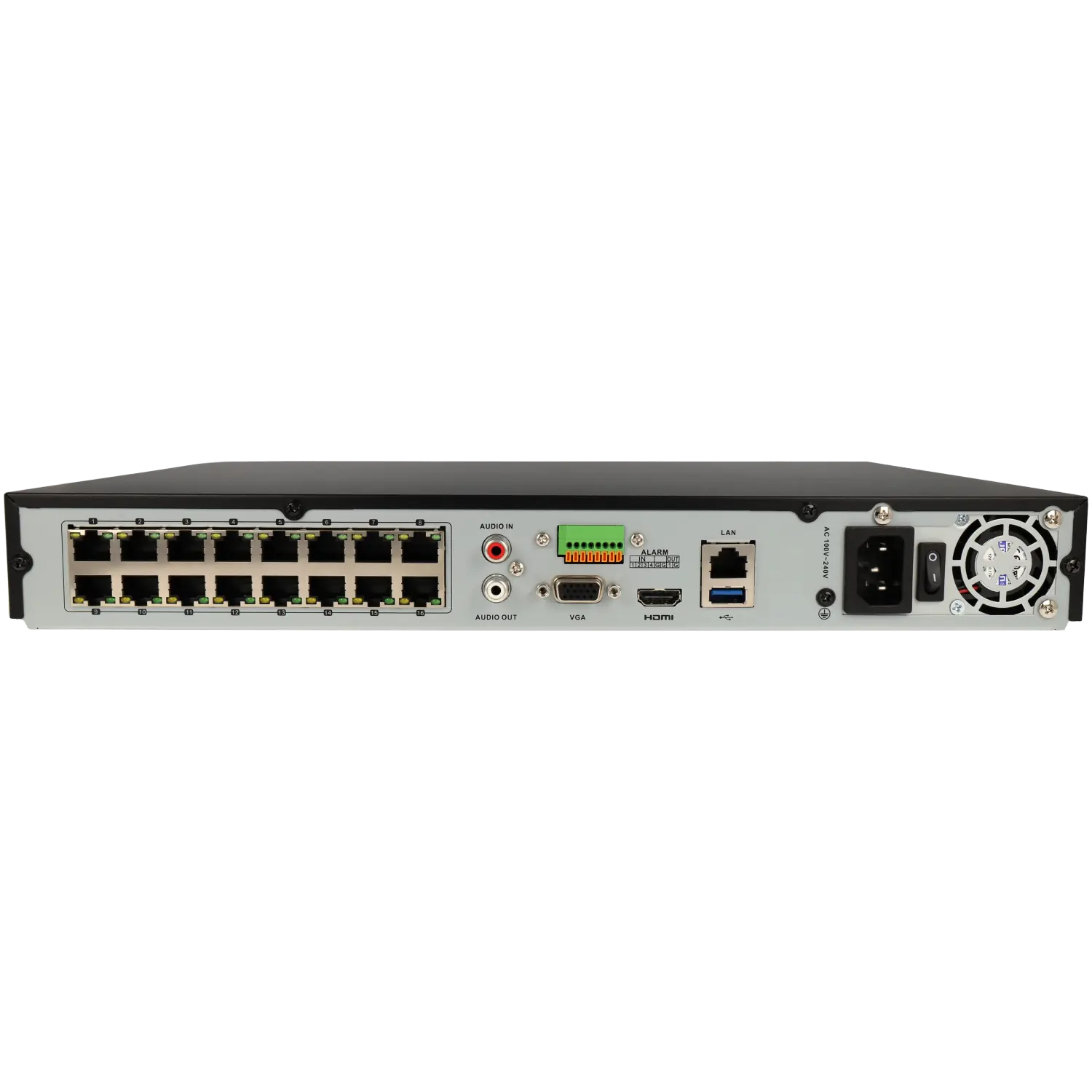 - Alimentação Simplificada: As 16 portas PoE integradas permitem alimentar as câmaras diretamente através do cabo de rede, reduzindo a necessidade de fontes de alimentação adicionais e simplificando a instalação.
