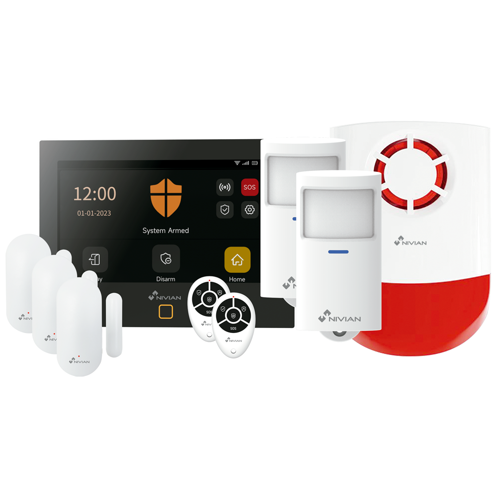 O Kit de Alarme Wi-Fi + GSM Nivian Smart NVS-TOUCHALARM-PREMIUM é uma solução completa para proteger a sua casa ou escritório. Com comunicação Wi-Fi e GSM 4G, este sistema sem fios de 433 MHz suporta até 166 dispositivos, integrando-se perfeitamente com a plataforma Tuya, permitindo controlo e monitorização remotos.