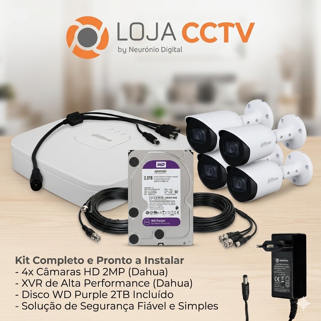 Kit CCTV Dahua 4 Câmaras 2MP Coaxial - Vigilância Completa