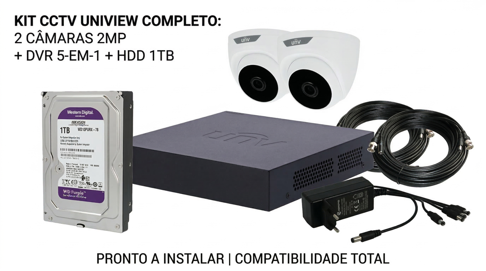 Kit CCTV Uniview 2 Câmaras 2MP Full HD Coaxial | lojaCCTVPro