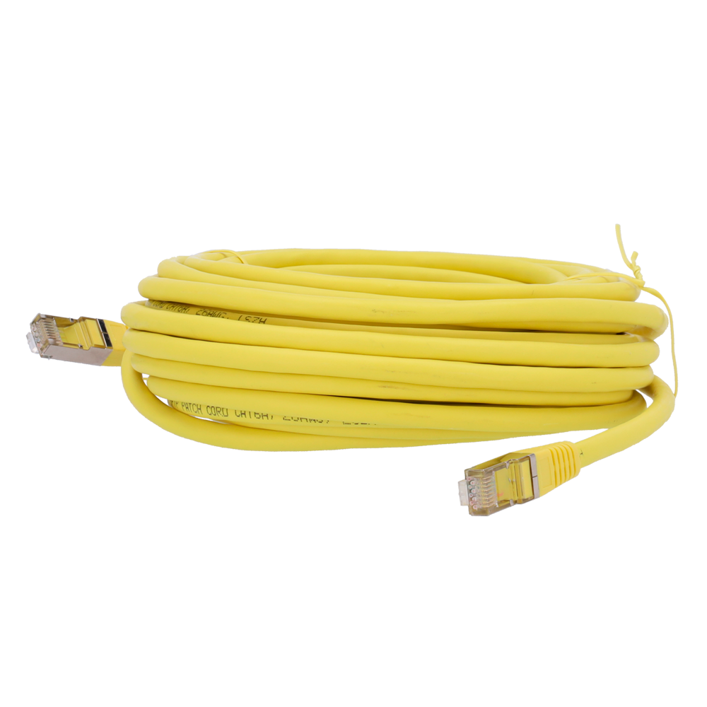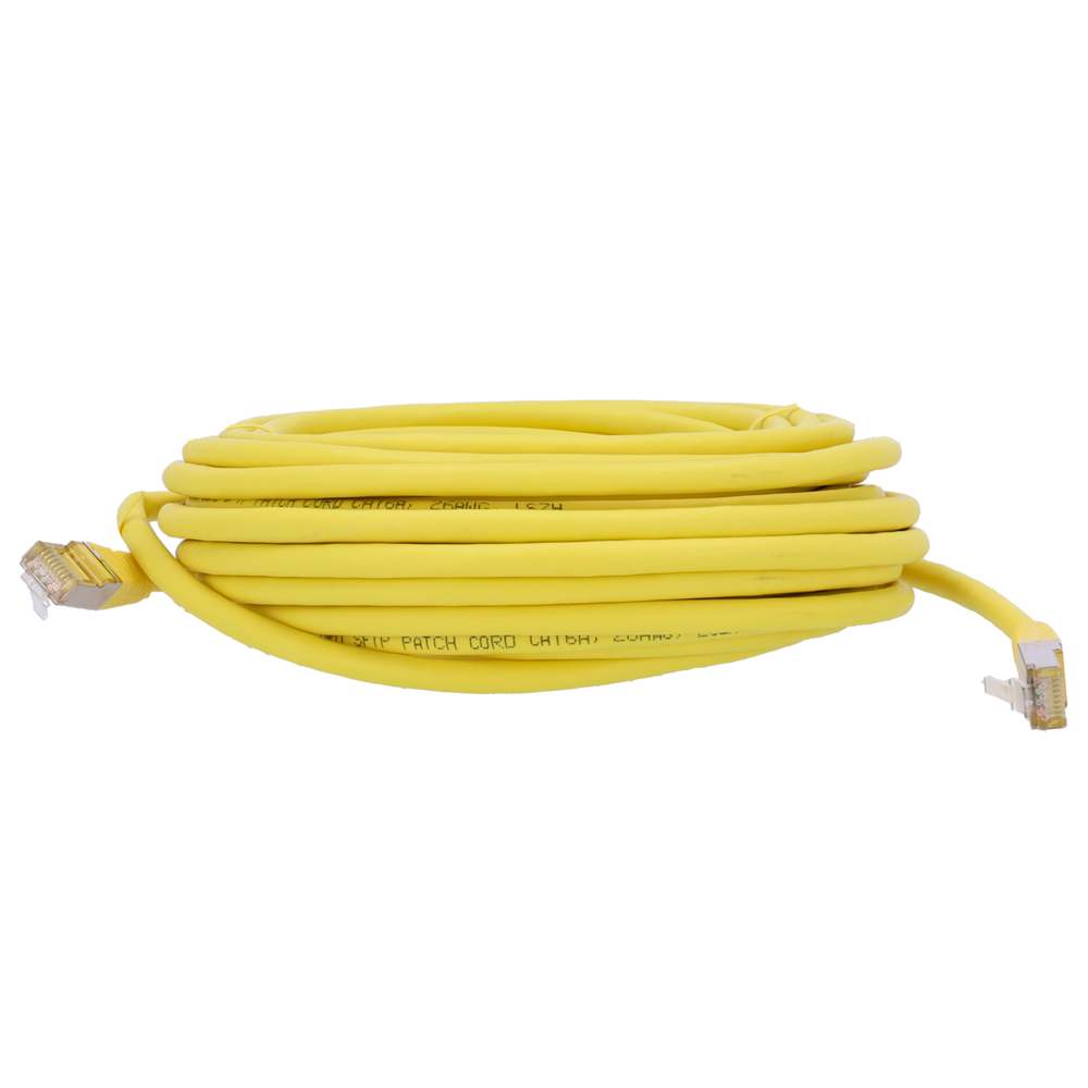 O Cabo de Rede Cat6A S/FTP com conectores RJ45 de 10 m na cor Amarelo, e capa LSZH (Low Smoke Zero Halogen), ideal para ligações fiáveis em casa ou no escritório.