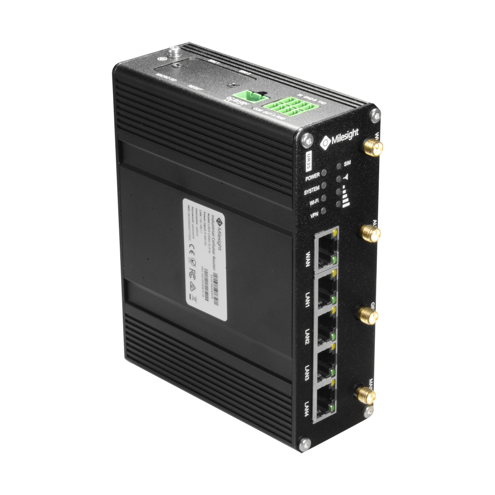 Milesight Router Industrial 4G WiFi GPS PoE 5 portas 10/100 (4 portas PoE)-MS-UR35-L04EU-G-P-W
