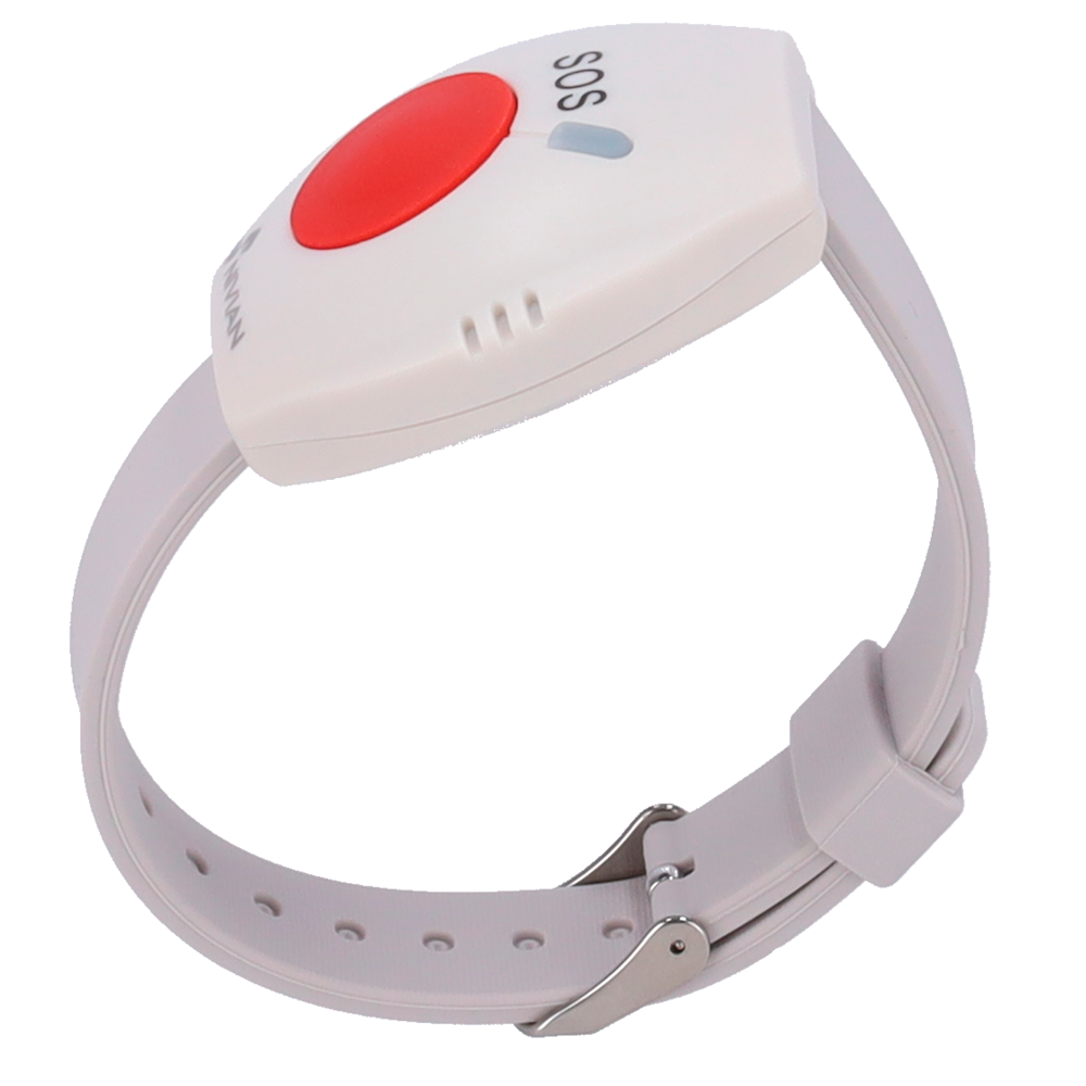El LED del brazalete se enciende al pulsar un botón y el panel de alarma confirmará la operación con un pitido, de manera que el usuario sabrá que su petición de ayuda se ha enviado.