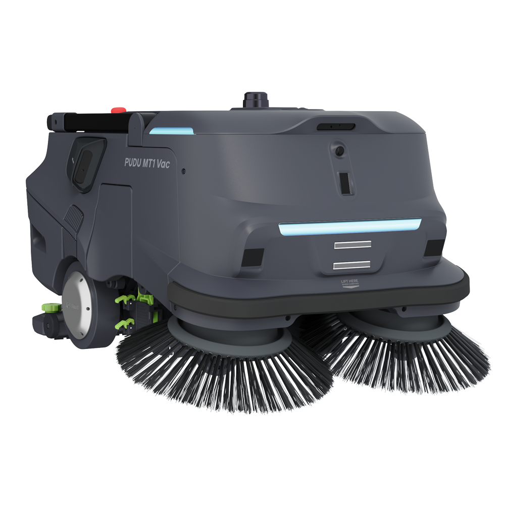 O Pudu MT1 é um robô de limpeza industrial autónomo, ideal para manter grandes espaços como centros comerciais, aeroportos e armazéns impecáveis. Equipado com escovas de duplo disco, este robô lida tanto com resíduos volumosos (garrafas, folhas) como com pó fino, armazenando tudo num contentor de 35 litros.