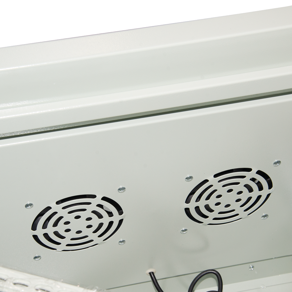 * **Ventilação:** Grelhas de ventilação e espaço para 2 ventiladores (não incluídos) para otimizar a refrigeração dos equipamentos.