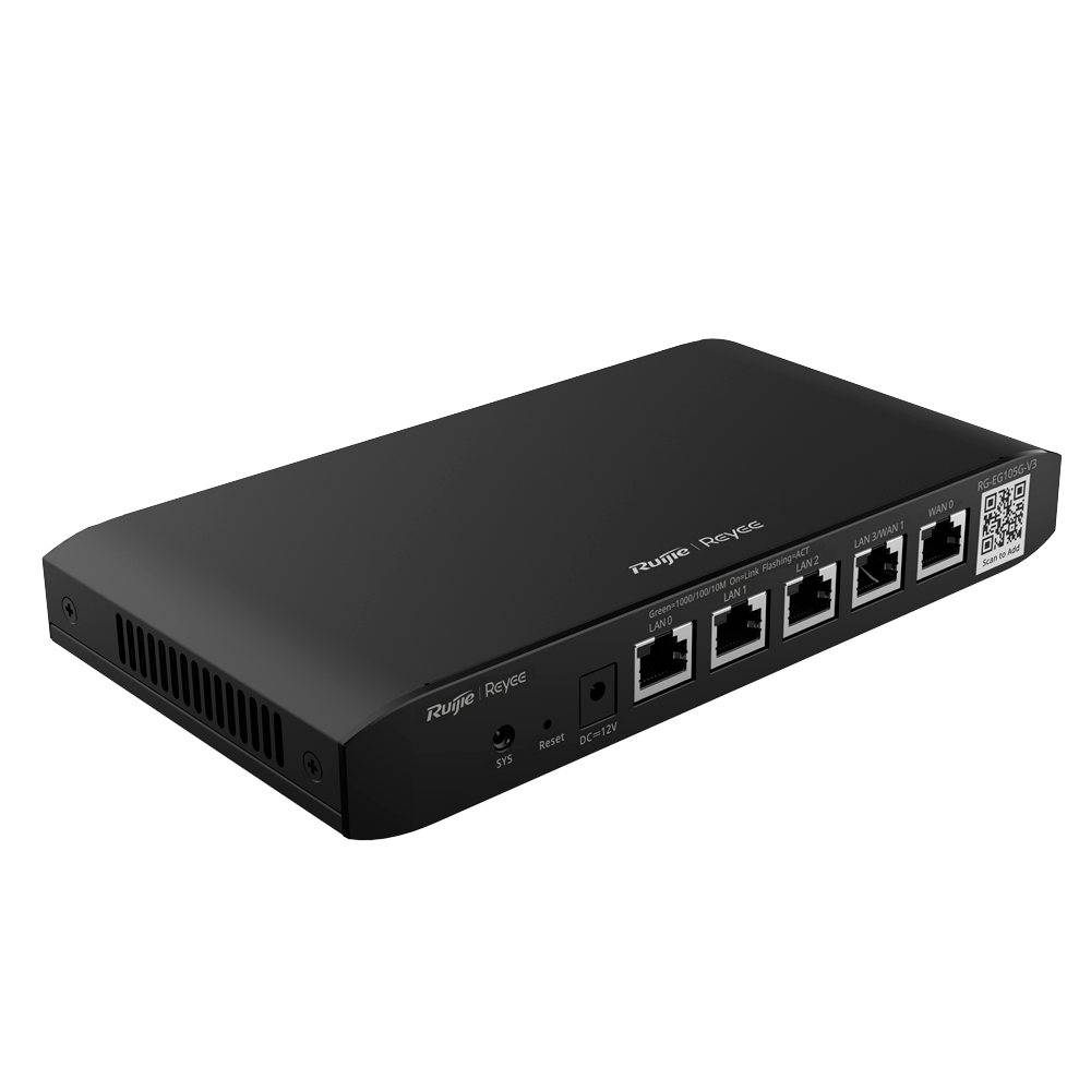 Home Routers RG-EG105G-V3 RG-EG105G-V3 SKU: RG-EG105G-V3 108,30 € 114,00 € Desconto de %. IVA incluído. Comprar Contactar Adicionar à wishlist Reyee Router Controlador Cloud5 Portas RJ45 10/100 /1000 MbpsSuporta até 2 WAN para failover ou balanceamentoAté 600 Mbps de largura de bandaServidor VPN IPSec, L2TP, PPTP, OpenVPNEspecificaçõesMarca:ReyeeInterface:3 puertos LAN 10/100/1000?Mbps , 1 puertos LAN/WAN , 1 puerto WANCPU:2 nucleos 880MhzRAM:128MBFlash:32MBNúmero de clientes recomendados:Hasta 100Ancho de banda:Hasta 600Mbps - 1000Mbps Modo turboVLANs:Hasta 16 VLANTecnologías:Routing DinámicoVPN:VPN Servidor/Cliente IPsec, L2TP, PPTP, OpenVPNNumero de túneles IPsec VPN + L2TP/PPTP VPN:8Numero de túneles OpenVPN:16Gestión en Modo Router:Puede controlar hasta 32 dispositivos (APs y Switches NBS) + 128 Switches ESGestión en Modo AC:Puede controlar hasta 300 dispositivos (APs y Switches NBS) + 128 Switches ESConsumo máximo:< 12WAlimentación:DC 12V/1A (Adaptador incluido)Temp. funcionamiento:0º C ~ +40º CInstalación:EscritorioDimensiones:206.5 (Al) x 108.5 (An) × 28 (Fo) mmPeso:0,406 Kg (sin embalaje) Partilhar