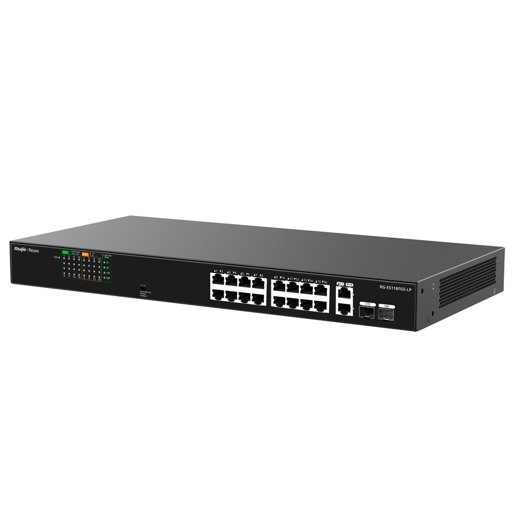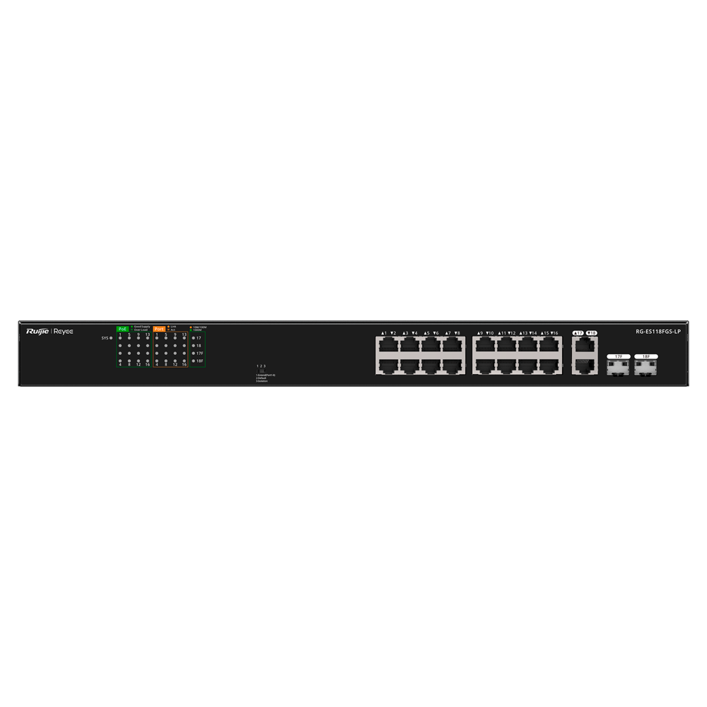 Home Switch PoE RG-ES118FGS-LP RG-ES118FGS-LP SKU: RG-ES118FGS-LP 199,05 € 209,53 € Desconto de %. IVA incluído. Comprar Contactar Adicionar à wishlist Reyee PoE Desktop SwitchCaixa metálica - Montagem em Rack16 Portas RJ45 10/100 Mbps + 2 Uplink Gigabit16 Portas PoE+ 802.3af/at | Potência total 120WPlug and PlayTecnologia poupança de energiaEspecificaçõesMarca:ReyeeInterface:18 Puertos RJ45 (2 Uplink Gigabit RJ45 Combo + 16 Downlink 10/100Mbps) + 2 SFP ComboCaracterísticas del PoE:Potencia PoE total de 120WFunciones:Aislado de Puertos, Poe Watchdog, Poe ExtendidoGestión:No gestionable, pero visible desde Ruijie cloud si al menos hay un sw gestionable en la instalaciónAncho de Banda:7,2GbpsTasa de Reenvío de Paquetes:5,35MbpsTabla MAC:8KTecnologías Soportadas:Modo Auto-Negociación / Auto MDI/MDIXProtección de sobretensiones:4 kVAlimentación:100V a 240V AC 3,0AConsumo Máximo:< 120 WTemperatura de funcionamiento:0º C ~ 45º CDimensiones / Peso:440 x 214,9 x 44 mmPeso:3 Kg Partilhar