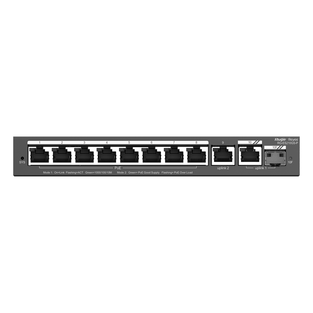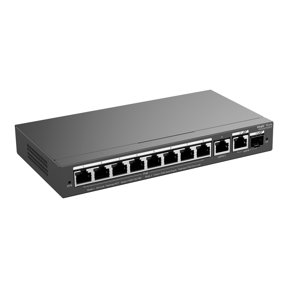 Home Switch PoE Gerenciável Reyee Manageable Cloud PoE Switch 8 Portas PoE + 2 Uplink RJ45 + 1 SFP Combo Velocidade da porta 10/100/1000 Mbps-RG-ES210GS-P Reyee Manageable Cloud PoE Switch 8 Portas PoE + 2 Uplink RJ45 + 1 SFP Combo Velocidade da porta 10/100/1000 Mbps-RG-ES210GS-P SKU: RG-ES210GS-P 146,20 € 153,90 € Desconto de %. IVA incluído. Comprar Contactar Adicionar à wishlist Reyee Manageable Cloud PoE Switch8 Portas PoE + 2 Uplink RJ45 + 1 SFP ComboVelocidade da porta 10/100/1000 Mbps30W por porta 802.3af/at / Máximo 120WVLAN/Isolamento de portas/Detecção de loopLimite de velocidade da portaEspecificaçõesMarca:ReyeeInterface:8 portas RJ45 10/100/1000 Mbps + 2 RJ45 10/100/1000 Mbps uplink + 1 SFP Combo 10/100/1000 MbpsVelocidade portas:Gigabit 10/100/1000MbpsFornecimento de energia PoE:Até 120W da potência totalPoe ampliado:Até 250 metros, configuráveis em todas as suas portasTecnologias e Protocolos:DHCP SnoopingProtocolos de Gestão:Web/Cloud/APPAlimentação:Adaptador de alimentação externa 54V/2,4ATemperatura de funcionamento:0° C ~ 40° CDimensões:108 (Fo) x 28 (Al) x 202 (An) mmPeso:1,38 Kg (com embalagem) Partilhar