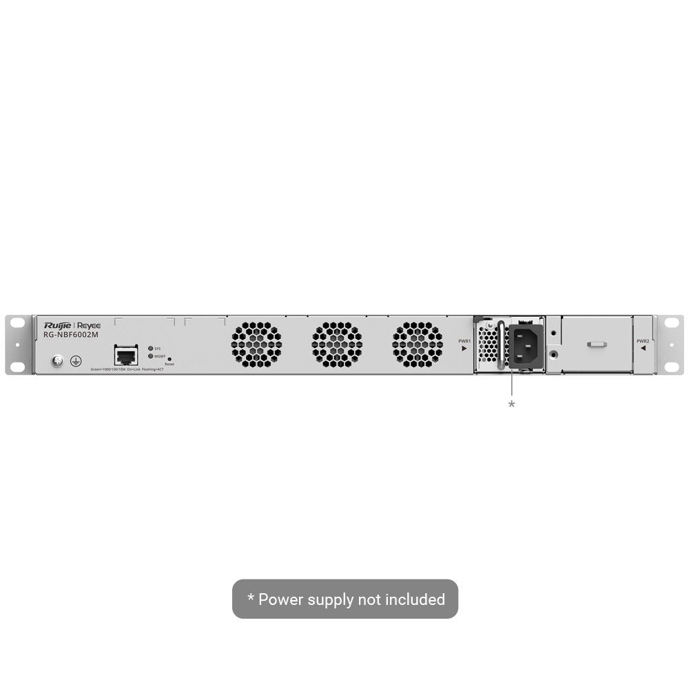 Home Chassis RG-NBF6002M RG-NBF6002M SKU: RG-NBF6002M 1.005,66 € 1.058,59 € Desconto de %. IVA incluído. Comprar Contactar Adicionar à wishlist Reyee E-Lighten Switch Modular de Chasis Capa 32 Ranhura de expansão (tamanho total de 1U))Até 16 Splitting E-Lighten e portas EthernetAté 48 Portas RJ45 / 16 SFP GE / 4 SFP+Static LAG/DHCP Snoop/IGMP Snoop/Port MirrorServidor DHCP/Rotas estáticas/RIP/OSPF/SNMPEspecificaçõesTamaño:1 unidad de RackSlot de Expansión:MF6000M-24GT2XSInterfaces:*Es necesaria la compra de una o varias tarjetas RG-MF6000M y dependiendo de las tarjetas elegidas los interfaces podrán variarFuncionalidades PON:Conexión automática de ONU´s a OLTCapacidad de Switching:216 GbpsTasa de reenvío:132MppsTabla MAC:32KVLAN:Hasta 4094Protocolos y Tecnologías de Red:ACLNúmero de Interfaces Virtuales:64Protocolos L3:Static RoutingVCS (Virtual Cluster Switch):Hasta 2 unidadesControl de redundancia:RLDPProtocolos Gestión:Web/Cloud/APP/SNMPProtección de sobretensiones:6 kV en fuente de alimentación y puertosAlimentación:(Fuente de alimentación no incluida)Consumo:126WTemperatura de funcionamiento:0° C - 50° CRefrigeración:3x Ventiladores internos (Fijos)Peso:6,82 Kg (Con embalaje)Dimensiones:460 (Fo) x 44 (Al) x 442 (An) mm, 1U Partilhar