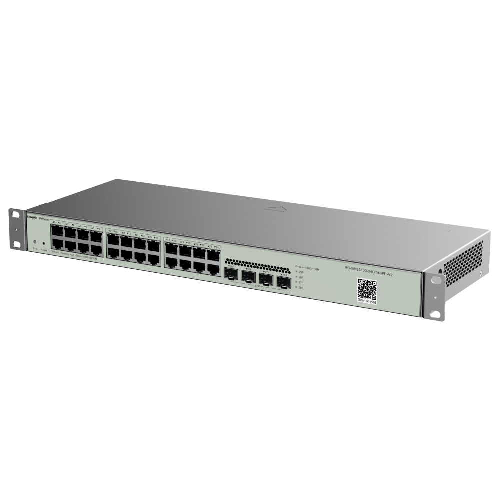 Home Switch Gerenciável RG-NBS3100-24GT4SFP-V2 RG-NBS3100-24GT4SFP-V2 SKU: RG-NBS3100-24GT4SFP-V2 234,40 € 246,74 € Desconto de %. IVA incluído. Comprar Contactar Adicionar à wishlist Reyee Switch Cloud Capa 224 puertos RJ45 Gigabit4 SFP GigabitStatic LAG/DHCP Snoop/IGMP Snoop/Port MirrorVLAN/Port Isolation/STP/RSTP/ACL/QoS/LACP/SNMPEnrackableEspecificaçõesInterface:24 puertos RJ45 10/100/1000 Mbps + 4 Puertos SFPVelocidad puertos:24 x 10/100/1000 Mbps - 4 x SFP 10/100/1000 MbpsVLAN:Voice VLANControl de redundacia:Spanning Tree (STP, RTSP)Protocolos y Tecnologías de Red:802.1XProtocolos Gestión:Web/Cloud/APP/SNMPInstalación:RackAlimentación:AC 100 V - 240 VTemperatura de funcionamiento:0° C - 50° CDimensiones:165 (Fo) x 44 (Al) x 440 (An) mm Partilhar