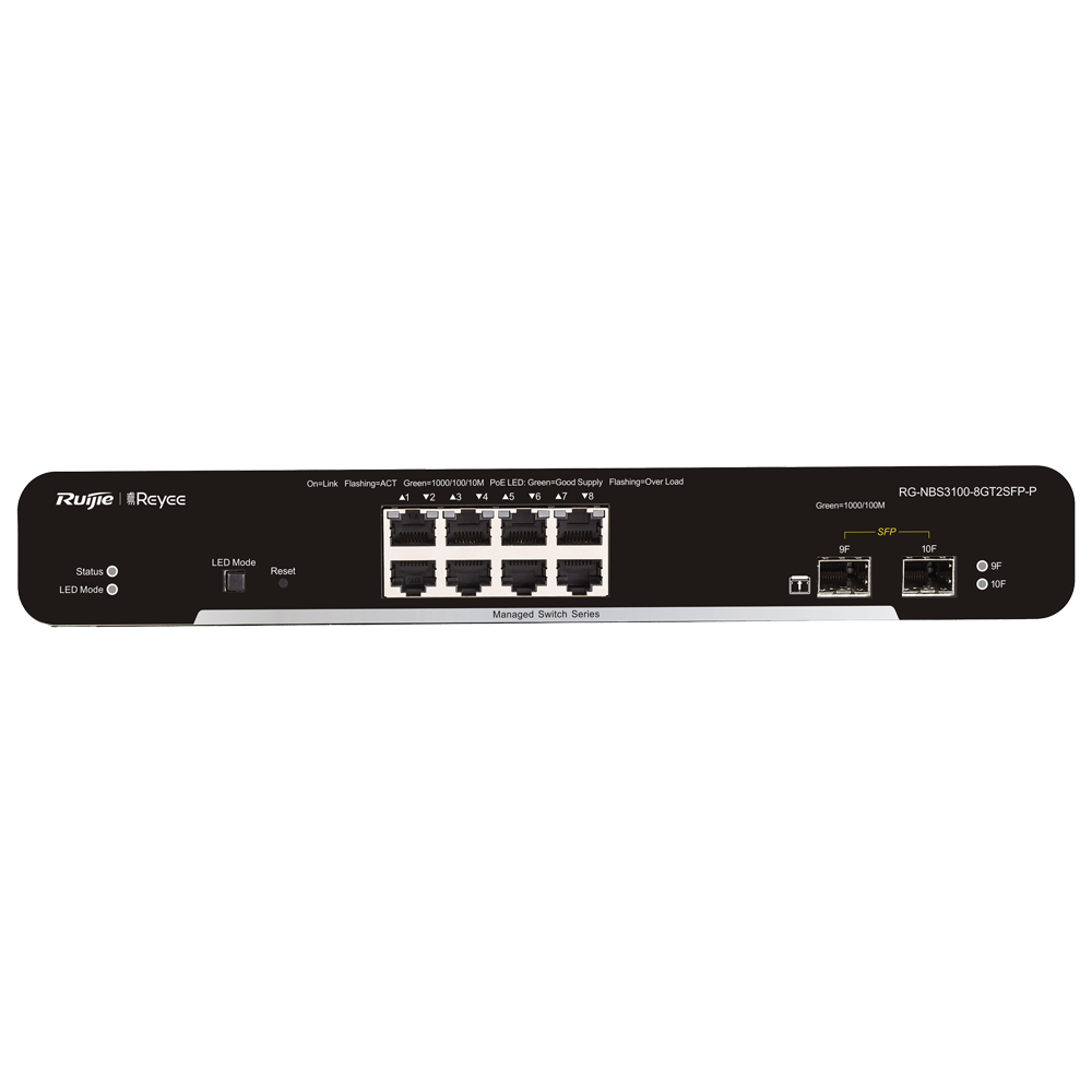 Home Switch PoE Gerenciável Reyee Switch PoE Cloud Layer 2 8 portas PoE+ Gigabit+ 2 SFP Gigabit 30W por porta 802.3af/at / Máximo 125W-Ruijie RG-NBS3100-8GT2SFP-P Reyee Switch PoE Cloud Layer 2 8 portas PoE+ Gigabit+ 2 SFP Gigabit 30W por porta 802.3af/at / Máximo 125W-Ruijie RG-NBS3100-8GT2SFP-P SKU: RG-NBS3100-8GT2SFP-P 245,50 € Desconto de %. IVA incluído. Comprar Contactar Adicionar à wishlist Reyee Switch PoE Cloud Layer 28 portas PoE+ Gigabit+ 2 SFP Gigabit30W por porta 802.3af/at / Máximo 125WStatic LAG/DHCP Snoop/IGMP Snoop/Port MirrorVLAN/isolamento de porta/STP/RSTP/ACL/QoS/LACP/SNMPPode ser montado em rackEspecificaçõesInterface:8 portas RJ45 10/100/1000 Mbps + 2 Portas SFPVelocidade portas:8 x 10/100/1000 Mbps - 2 x SFP 10/100/1000 MbpsPoE:Portas 1~8 802.3af/atFornecimento de energia eléctrica:Até 30 W por porta (125W para todo o dispositivo)Características PoE:Conforme norma IEEE 802.3at PoE+ / IEEE 802.3af PoEVLAN:Voice VLANControlo de Redundância:Spanning Tree (STP, RTSP)Protocolos e tecnologias de rede:802.1XProtocolos de Gestão:Web/Cloud/APPInstalação:Desktop e EnrackableAlimentação:AC 100 V - 240 VTemperatura de funcionamento:0° C - 50° CDimensões:220 (Fo) x 43.6 (Al) x 330 (An) mmPeso:2 Kg (com embalagem) Marca Ruijie Características Partilhar