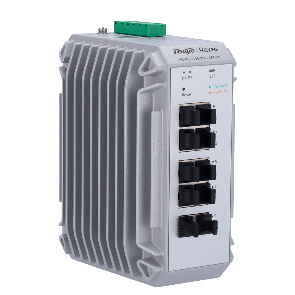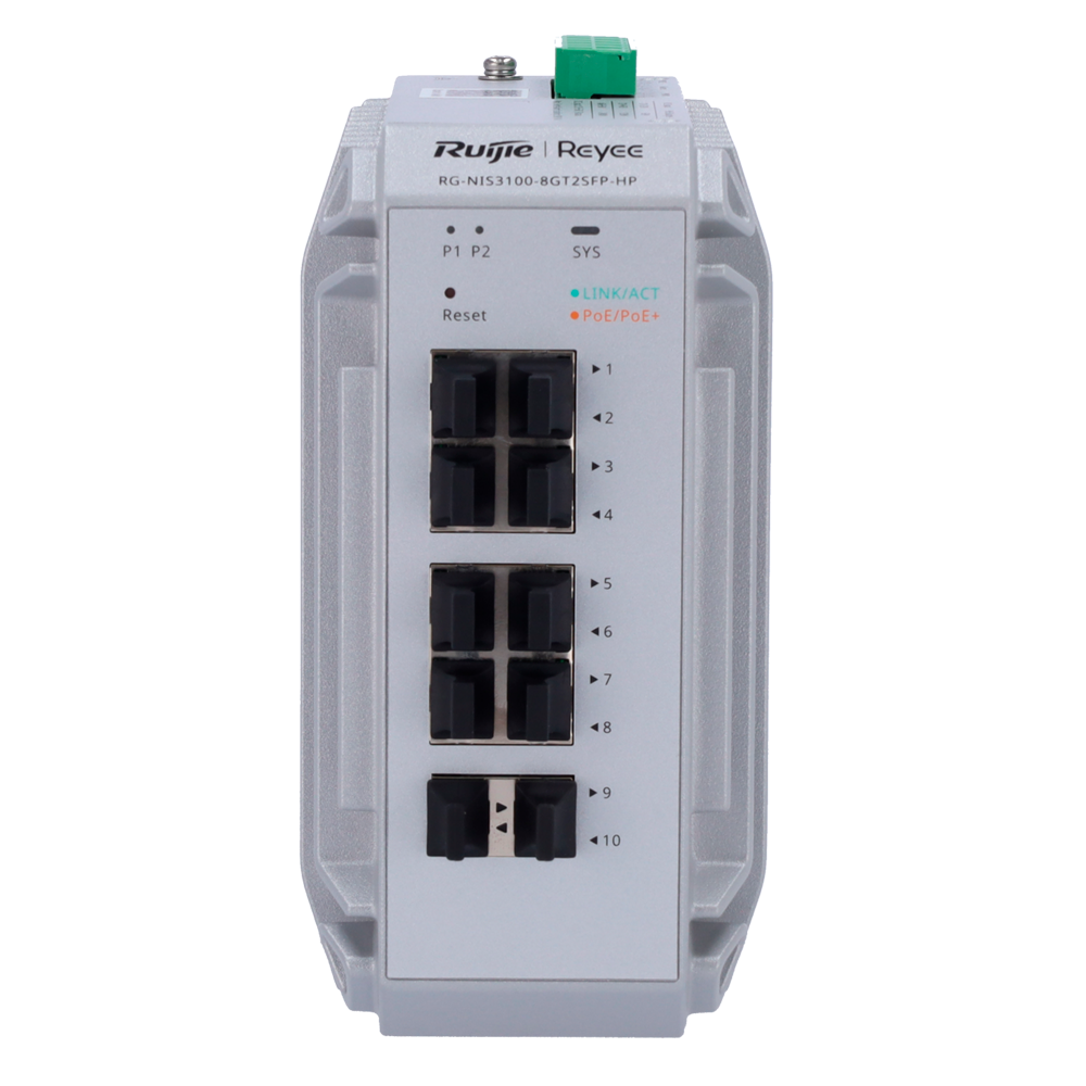 Home Switch PoE Gerenciável Reyee Switch Industrial PoE Cloud Capa 2 8 portas Gigabit PoE+ + 2 portas Gigabit SFP 30W por porta 802.3af/at / Máximo 240W-Ruijie RG-NIS3100-8GT2SFP-HP Reyee Switch Industrial PoE Cloud Capa 2 8 portas Gigabit PoE+ + 2 portas Gigabit SFP 30W por porta 802.3af/at / Máximo 240W-Ruijie RG-NIS3100-8GT2SFP-HP SKU: RG-NIS3100-8GT2SFP-HP 550,25 € 579,22 € Desconto de %. IVA incluído. Comprar Contactar Adicionar à wishlist Reyee Switch Industrial PoE Cloud Capa 28 portas Gigabit PoE+ + 2 portas Gigabit SFP30W por porta 802.3af/at / Máximo 240WStatic LAG/DHCP Snoop/IGMP Snoop/Port MirrorPrevenção de VLAN/Loop/STP/RSTP/ACL/WatchdogMontagem em carril DINEspecificaçõesInterface:8 portas RJ45 10/100/1000 Mbps + 2 Portas SFPVelocidade portas:8 x 10/100/1000 Mbps - 2 x Gigabit SFPPoE:Portas 1~8 802.3af/atFornecimento de energia eléctrica:Se o dispositivo for alimentado a 12vdc,, a potência total é 60WCaracterísticas PoE:Conforme norma IEEE 802.3at PoE+ / IEEE 802.3af PoEVLAN:Voice VLANProtocolos de redundância:ERPS (apenas disponível nas suas portas SFP)Protocolos e tecnologias de rede:SNMP v1/v2c/v3Protocolos de Gestão:Web/Cloud/APPInstalação:Calha DIN e/ou paredeAlimentação:- RG-NIS-PA120-48 (oferecerá uma potência PoE total inferior)Proteções:IP40 contra poeirasTemperatura de Funcionamento:-40ºC~80ºC Quando um exaustor com um caudal de 400 LFM é instalado num localMódulos SFP industriais recomendados:RG-NIS-GE-SFP-550M-MM850Dimensões:85 x 132 x 165mmPeso:1,91 Kg (com embalagem) Marca Ruijie Partilhar