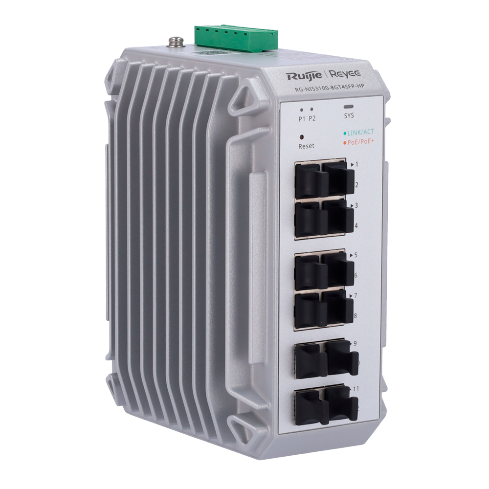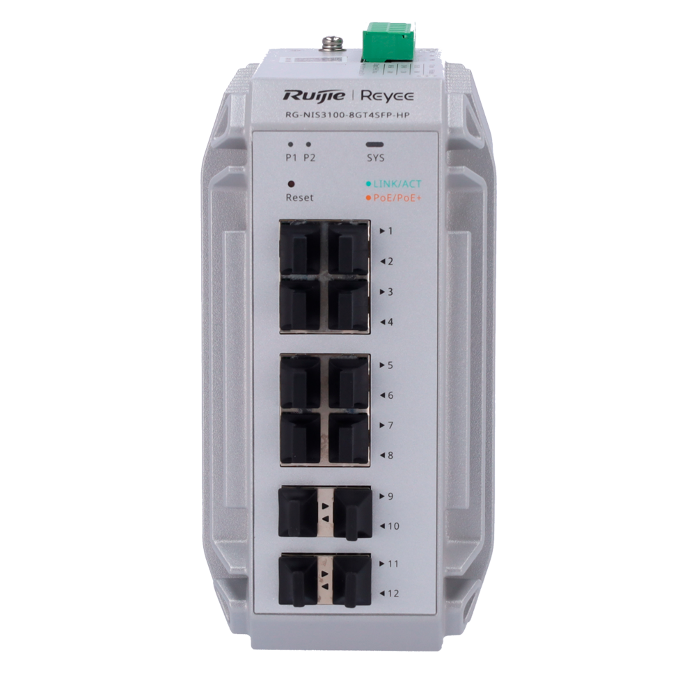Home Switch PoE Gerenciável Reyee Switch Industrial PoE Cloud Capa 2 8 portas Gigabit PoE+ + 4 portas Gigabit SFP 30W por porta 802.3af/at / Máximo 240W-Ruijie RG-NIS3100-8GT4SFP-HP Reyee Switch Industrial PoE Cloud Capa 2 8 portas Gigabit PoE+ + 4 portas Gigabit SFP 30W por porta 802.3af/at / Máximo 240W-Ruijie RG-NIS3100-8GT4SFP-HP SKU: RG-NIS3100-8GT4SFP-HP 584,39 € 615,15 € Desconto de %. IVA incluído. Comprar Contactar Adicionar à wishlist Reyee Switch Industrial PoE Cloud Capa 28 portas Gigabit PoE+ + 4 portas Gigabit SFP30W por porta 802.3af/at / Máximo 240WStatic LAG/DHCP Snoop/IGMP Snoop/Port MirrorPrevenção de VLAN/Loop/STP/RSTP/ACL/WatchdogMontagem em carril DINEspecificaçõesInterface:8 portas RJ45 10/100/1000 Mbps + 4 Portas SFPVelocidade portas:8 x 10/100/1000 Mbps - 4 x Gigabit SFPPoE:Portas 1~8 802.3af/atFornecimento de energia eléctrica:Se o dispositivo for alimentado a 12vdc,, a potência total é 60WCaracterísticas PoE:Conforme norma IEEE 802.3at PoE+ / IEEE 802.3af PoEVLAN:Voice VLANControlo de Redundância:ERPS (apenas disponível nas suas portas SFP)Protocolos e tecnologias de rede:SNMP v1/v2c/v3Protocolos de Gestão:Web/Cloud/APPInstalação:Calha DIN e/ou paredeAlimentação:- RG-NIS-PA120-48Proteções:IP40 contra poeirasTemperatura de Funcionamento:-40ºC~80ºC Quando um exaustor com um caudal de 400 LFM é instalado num localMódulos SFP industriais recomendados:RG-NIS-GE-SFP-550M-MM850Dimensões:85 x 132 x 165mmPeso:1,93 Kg (com embalagem) Marca Ruijie Partilhar