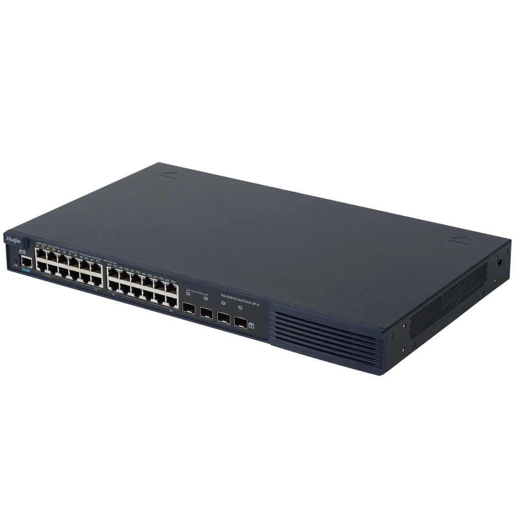Home Switch PoE Gerenciável Ruijie Switch PoE Cloud gerenciável L2+ 24 RJ45 Gigabit+ 4 SFP+ 10Gigabit 20 Portas PoE+ 802.3at + 4 Portas Hi-PoE 60W-Ruijie RG-S2910-24GT4XS-UP-H Ruijie Switch PoE Cloud gerenciável L2+ 24 RJ45 Gigabit+ 4 SFP+ 10Gigabit 20 Portas PoE+ 802.3at + 4 Portas Hi-PoE 60W-Ruijie RG-S2910-24GT4XS-UP-H SKU: RG-S2910-24GT4XS-UP-H 1.479,51 € Desconto de %. IVA incluído. Comprar Contactar Adicionar à wishlist Ruijie Switch PoE Cloud gerenciável L2+24 RJ45 Gigabit+ 4 SFP+ 10Gigabit20 Portas PoE+ 802.3at + 4 Portas Hi-PoE 60WVLAN/STP/RSTP/MSTP/ACL/QoS/SNMPLACP/DHCP Snooping/IGMP SnoopingPode ser montado em rackEspecificaçõesInterface:24 Portas RJ45 + 4 Portas SFP+Velocidade portas:24 Portas 10/100/1000Mbps + 4 Portas 10GigabitCaracterísticas PoE:20 Portas PoE/PoE+ IEEE802.3af/at + 4 Portas Hi-PoE IEEE802.3btPotência PoE total:370WVLAN:802.1Q / VLAN privada / MAC VLAN / VLAN de voz / Protocolo VLAN / Mapeamento de VLANControlo de Redundância:STP, RSTP, MSTP, LACP, ERPSProtocolo Gestão:Web/Cloud/APP, SNMP, CLI, RMONDHCP:Servidor / Cliente / Snooping / Relay / IPV6 Snooping / Ipv6 Cliente / IPv6 RelayRouting:IPv4/IPv6 static routing, RIP, RIPng, OSPFv2, OSPFv3ACL:ACL Standard e ExtendidasQoS:8 prioridades por porta: SP, WRR, DRR, SP+WRR, SP+DRRStacking Virtual:Tecnologia VSUTemperatura de funcionamento:-0º C - 50° CAlimentação:AC 100 V - 240 VConsumo:460WDimensões:440 x 260 x 44 mm Marca Ruijie Características Partilhar