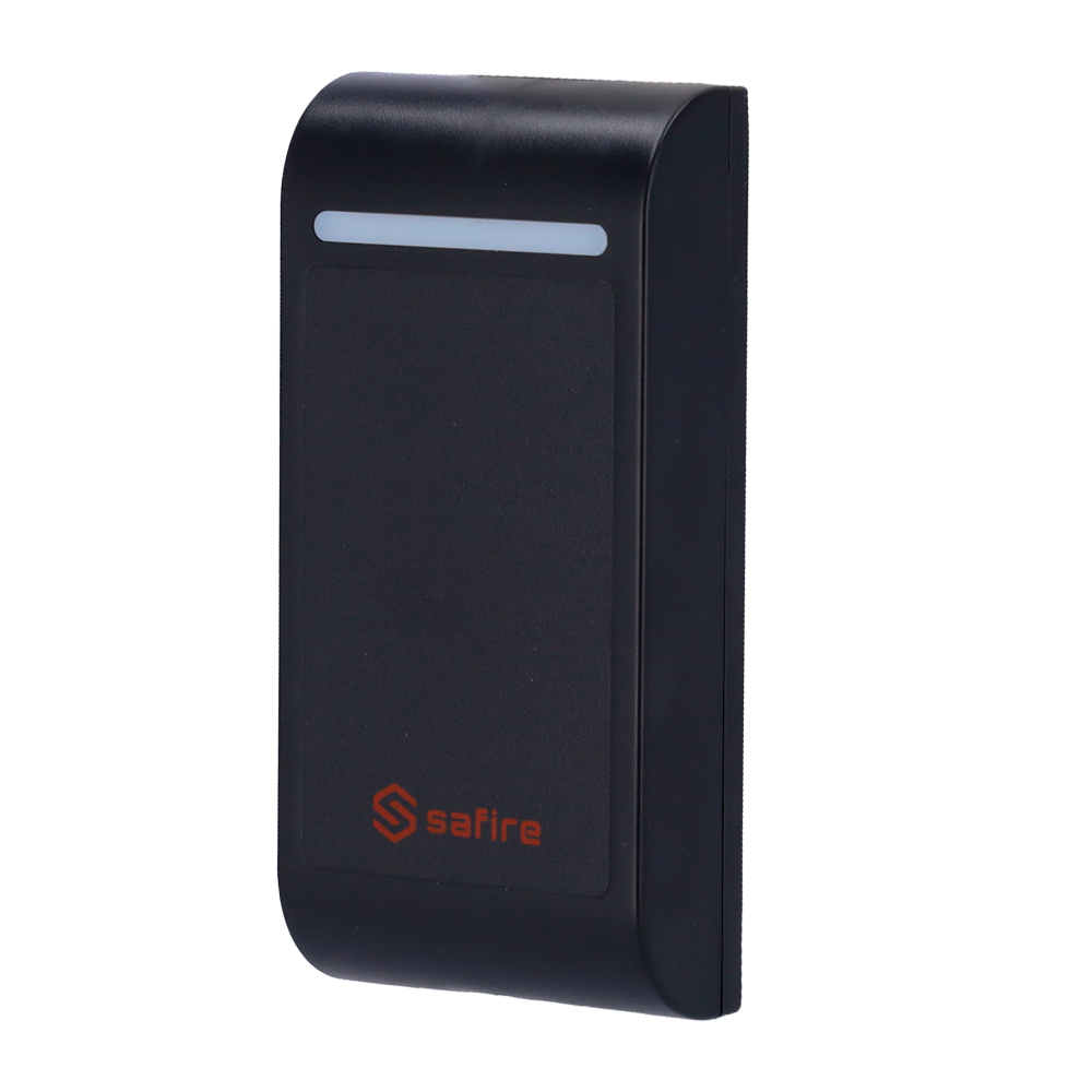 O Safire SF-AC107 é um dispositivo autónomo de controlo de acesso, combinando controlador e leitor numa única unidade. Ideal para gerir o acesso a instalações, identifica utilizadores e aciona fechaduras eletrónicas. Utiliza cartões ou porta-chaves RFID EM de 125 kHz para identificação. Possui funções avançadas como antipass-back e configuração local de utilizadores e tempos de abertura.