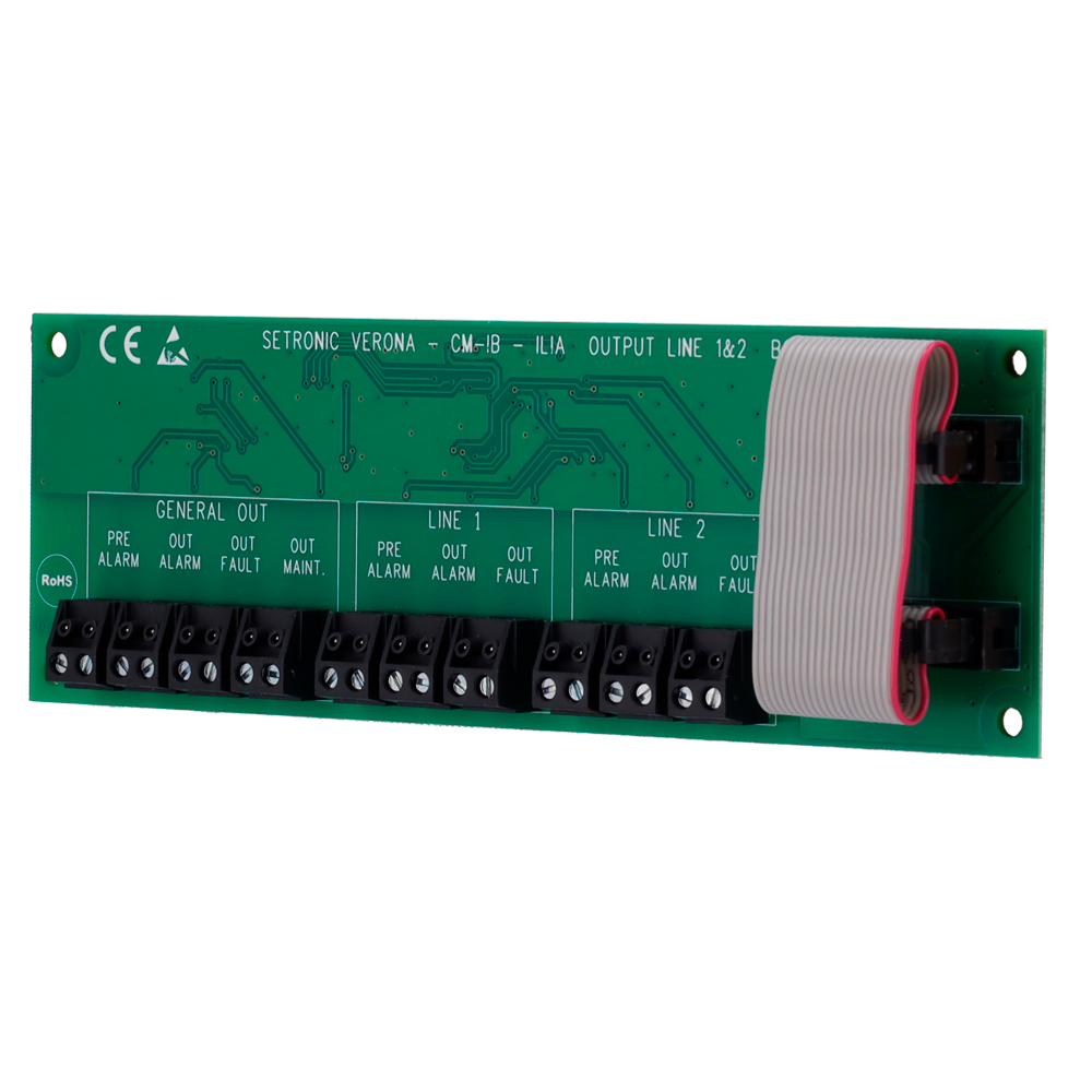 A Securiton CM-IB é uma placa de relés projetada para utilização com o controlador CLI, permitindo a monitorização eficaz de até dois detetores. Esta placa fornece informações detalhadas sobre o estado de cada detetor, integrando-se diretamente no controlador para uma gestão centralizada e eficiente do sistema de segurança.