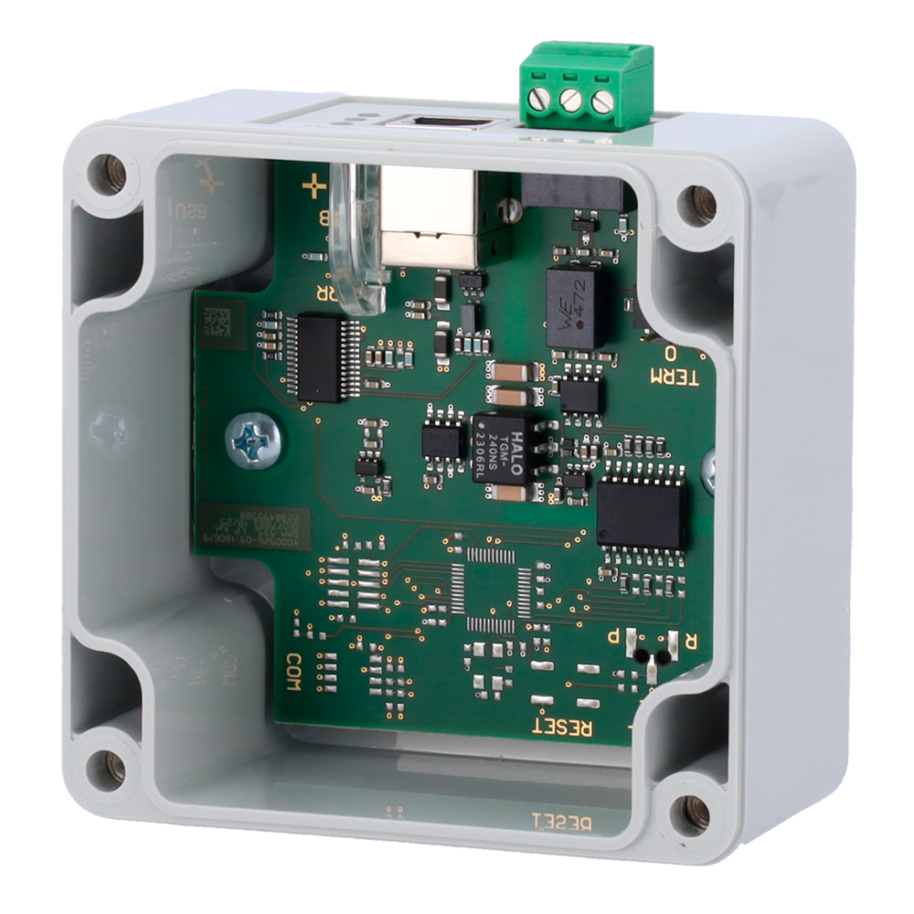 Ligação fácil de dispositivos RS485 a um computador via USB.