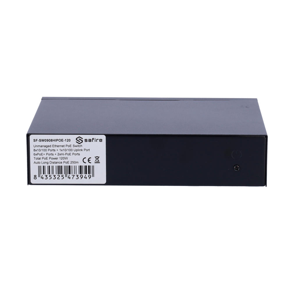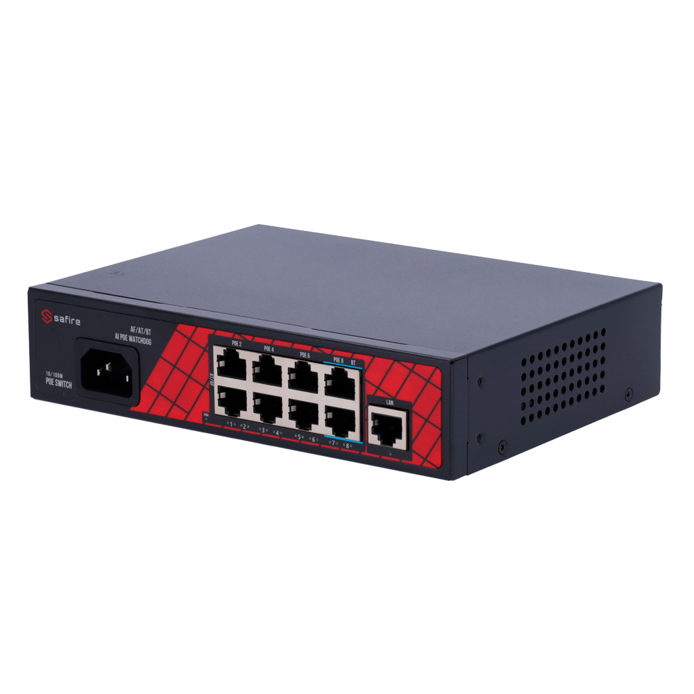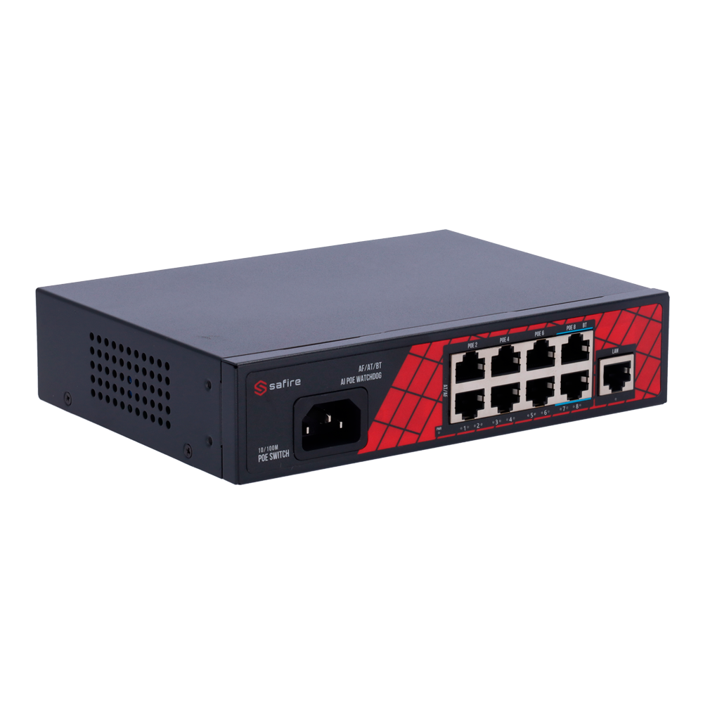 Home Switch PoE Safire Switch Hi-PoE 9 portas (8 portas + 1 uplink)-Safire SF-SW0908HIPOE-120 Safire Switch Hi-PoE 9 portas (8 portas + 1 uplink)-Safire SF-SW0908HIPOE-120 SKU: SF-SW0908HIPOE-120 51,25 € 53,95 € Desconto de %. IVA incluído. Comprar Contactar Adicionar à wishlist Interruptor Safire Hi-PoE8 portas PoE + 1 Uplink RJ45Velocidade da porta 10/100Mbps6 Portas PoE+ 30W + 2 Portas Hi-PoE 60WPotência PoE total de 120WPoE Watchdog / Auto PoE Extended To 250mEspecificaçõesInterface:8 portas PoE RJ45 + 1 Uplink RJ45Velocidade da porta RJ45:8x 10/100Mbps - 1x 10/100MbpsCaracterísticas PoE:Porta 7~8 Hi-PoE Até 60W 802.3af/at/btDistância de transmissão:Não há necessidade de configurar manualmente a função PoE Extended, o interruptor deteta automaticamente a distância do cabo e a distância do caboLargura de Banda:1.8GbpsTabela MAC:2KLatência:10 para 100MBps < 16?s (usando 64 bytes do tamanho do pacote)AI PoE:Portas PoE Watchdog 1~8 - Reinício automático da alimentação elétrica de uma porta PoE quando é detetada uma possível falha.Alimentação:Tomada frontal de CA 90~240 VProteções:8KV Proteção ESDTemperatura de funcionamento:-30° C - 60° CDimensões:187 (Fo) x 43 (Al) x 139 (An) mmPeso:1Kg Marca Safire Características Partilhar