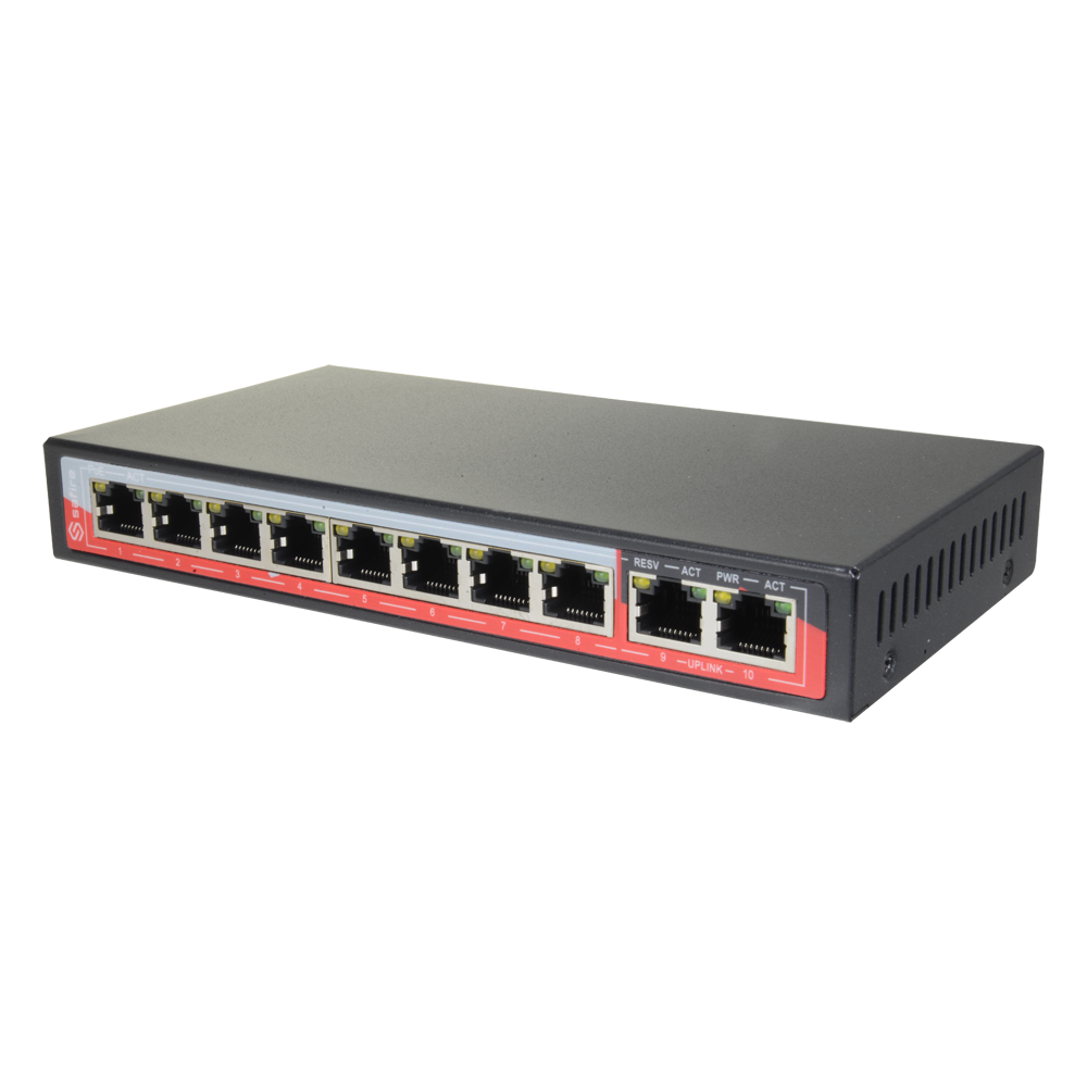 Home Switch PoE Safire Switch PoE 10 portas (8 portas + 2 uplink)-Safire SF-SW1008POE-96 Safire Switch PoE 10 portas (8 portas + 2 uplink)-Safire SF-SW1008POE-96 SKU: SF-SW1008POE-96 62,30 € 65,58 € Desconto de %. IVA incluído. Comprar Contactar Adicionar à wishlist Switch PoE8 portas PoE + 2 Uplink RJ45Velocidade 10/100 MbpsFunções:Ai VLan/QOS/CCTV Extend/PoEPadrão IEEE802.3af (PoE) / at (PoE+:Padrão IEEE802.3af (PoE) / at (PoE+)Até 96W no total para todas as porta:Até 96W no total para todas as portasEspecificaçõe:EspecificaçõesInterface:8 portas PoE RJ45 + 2 Uplink RJ45Velocidade portas:10/100 MbpsLargura de banda:Até 2 GbpsFunções Inteligentes:Ai VLan/Ai PoE/Ai CCTV Extend/Ai QOSFornecimento de energia eléctrica:Até 96 W potência totalCaracterísticas PoE:Conforme norma IEEE 802.3at PoE+ / IEEE 802.3af PoEAlimentação:DC 52 V / 1.85 A (alimentador externo incluído)Temperatura de funcionamento:0º C ~ 40º CDimensões / Peso:94 (Fo) x 27 (Al) x 184 (An) mm / 1.15 g Marca Safire Características Partilhar