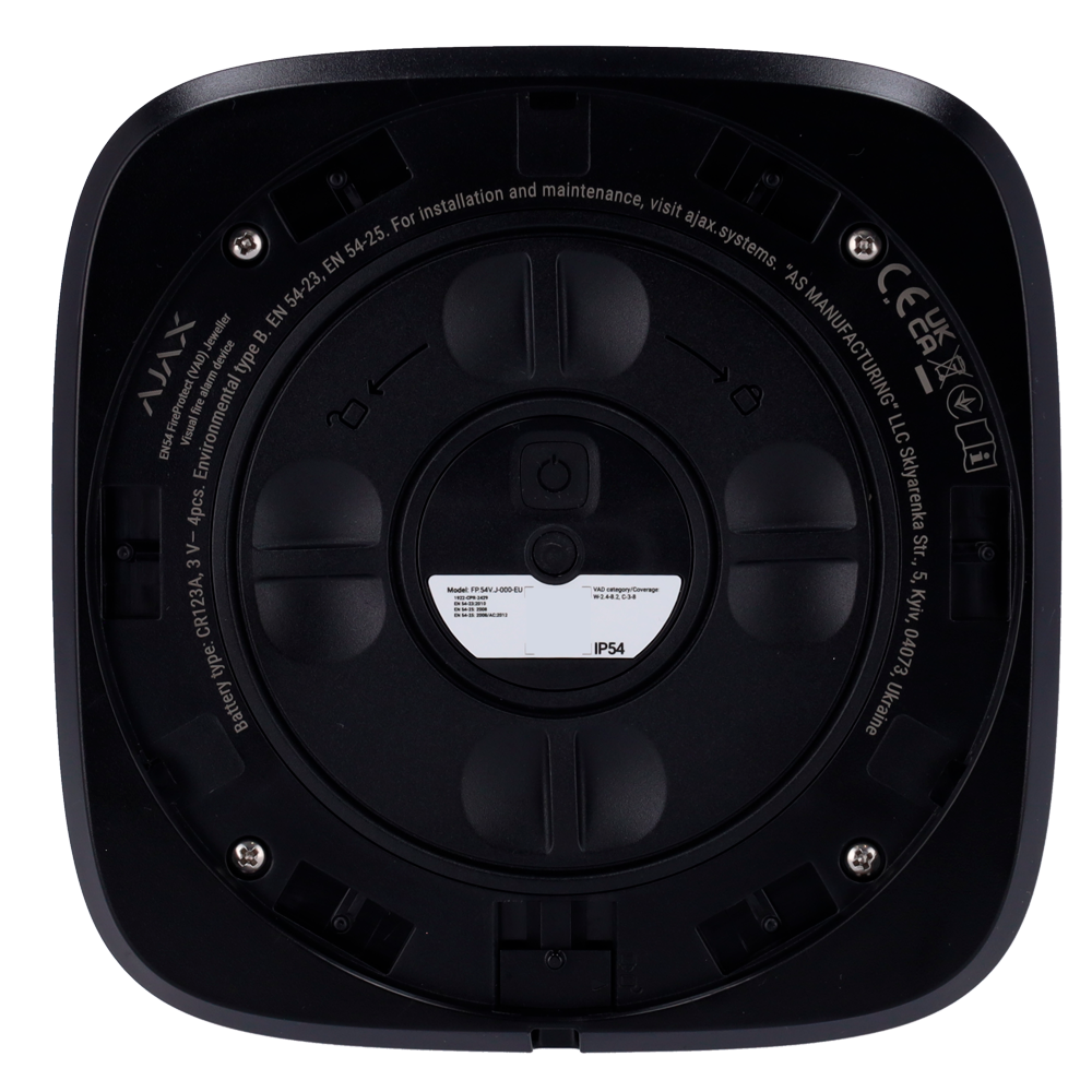 O AJ-EN54-VAD-B da Ajax é um dispositivo de alarme visual (DAV) sem fios e endereçável, certificado pelas normas EN 54-23 e EN 54-25. Este sinalizador fornece um alerta visual potente, assegurando uma resposta rápida em situações de incêndio e garantindo a acessibilidade para todos, incluindo pessoas com dificuldades auditivas. Ideal para instalação tanto em ambientes interiores como exteriores.