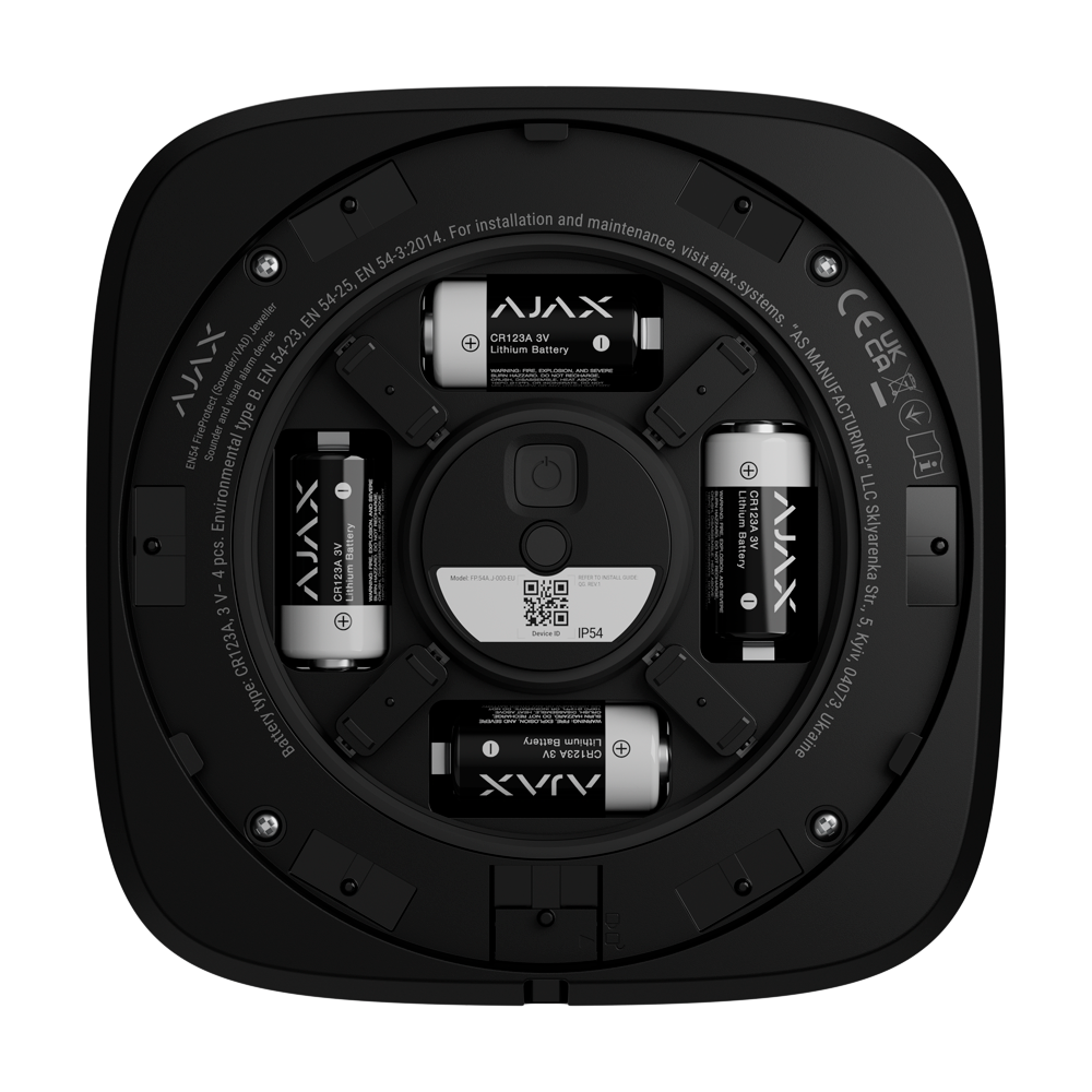 A AJ-EN54-SOUNDER-B é uma sirene de incêndio sem fios, certificada pelas normas europeias EN 54-3 e EN 54-25. Emite avisos sonoros potentes (até 100 dB) e oferece 32 tons à escolha. A comunicação segura com o painel de controlo é assegurada pela tecnologia Jeweller. Ideal para complementar o seu sistema de alarme Ajax e aumentar a segurança contra incêndios na sua propriedade.