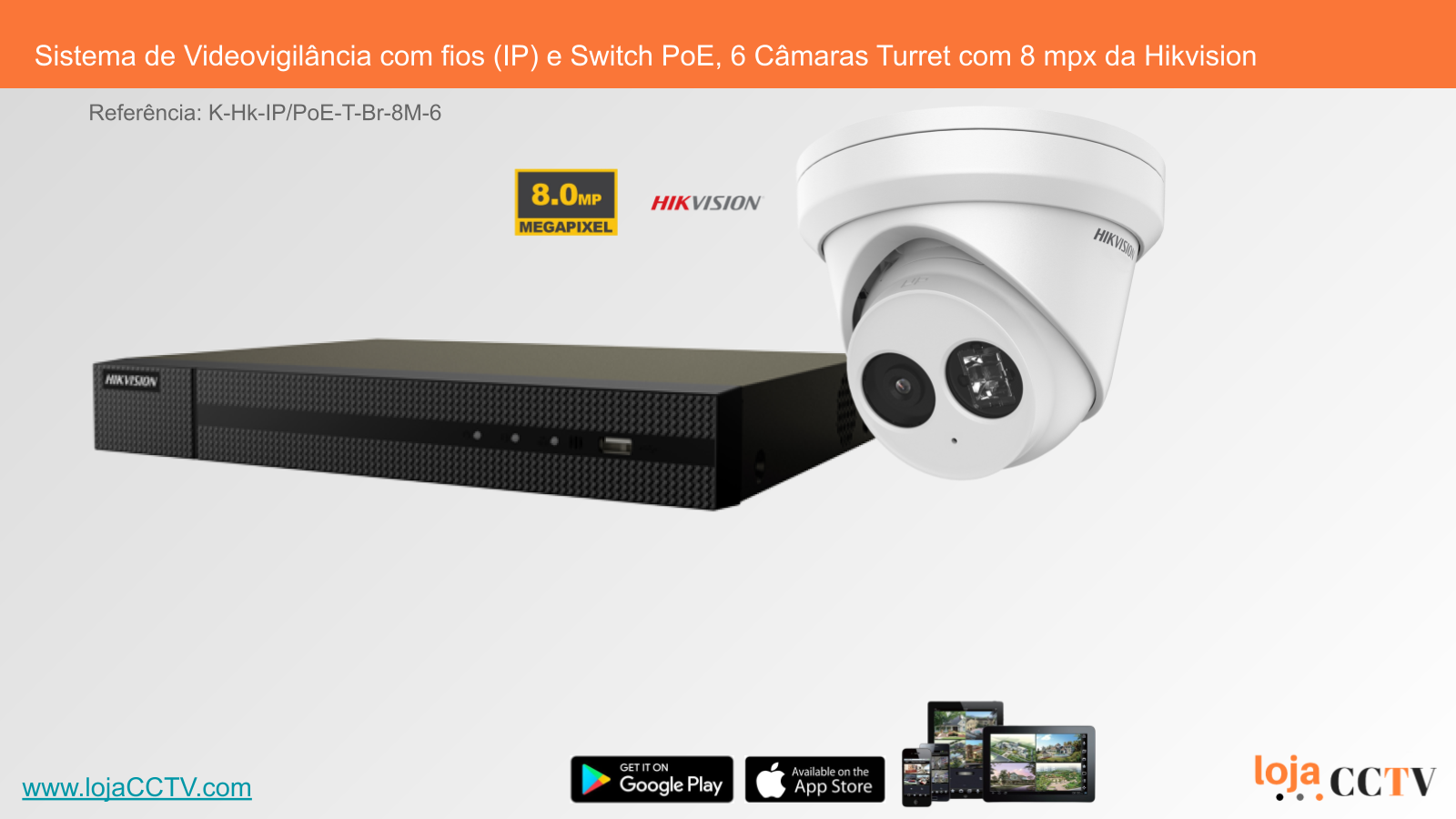 Sistema de Videovigilância com fios (IP) e Switch PoE, 6 Câmaras Turret com 8 mpx da Hikvision