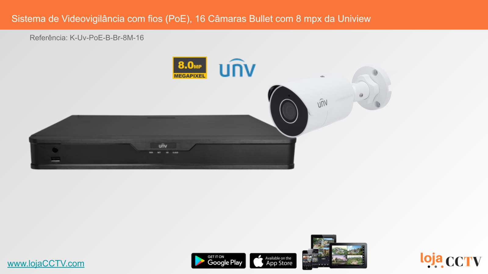 Sistema de Videovigilância com fios (PoE), 16 Câmaras Bullet com 8 mpx da Uniview