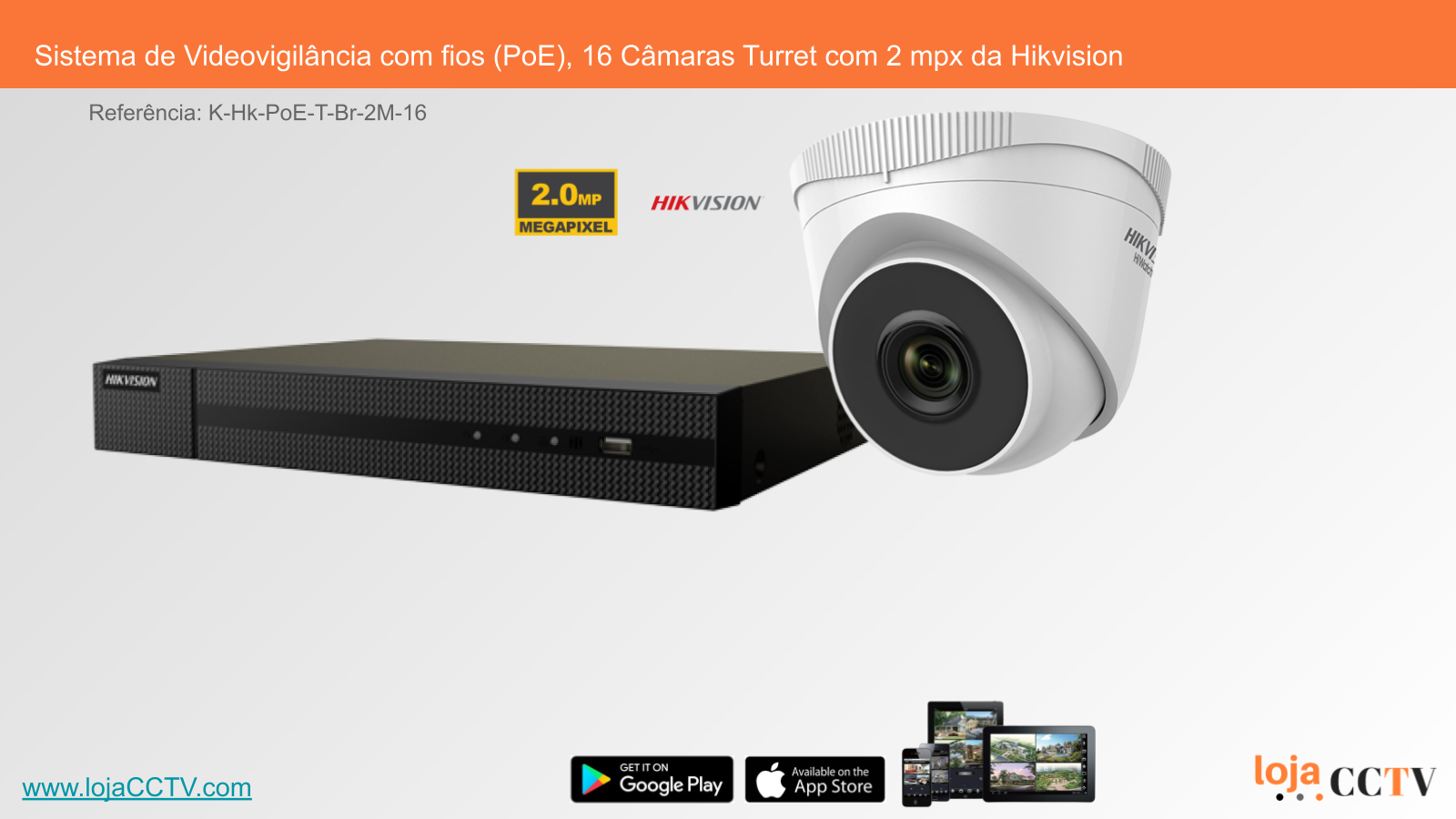 Sistema de Videovigilância com fios (PoE), 16 Câmaras Turret com 2 mpx da Hikvision