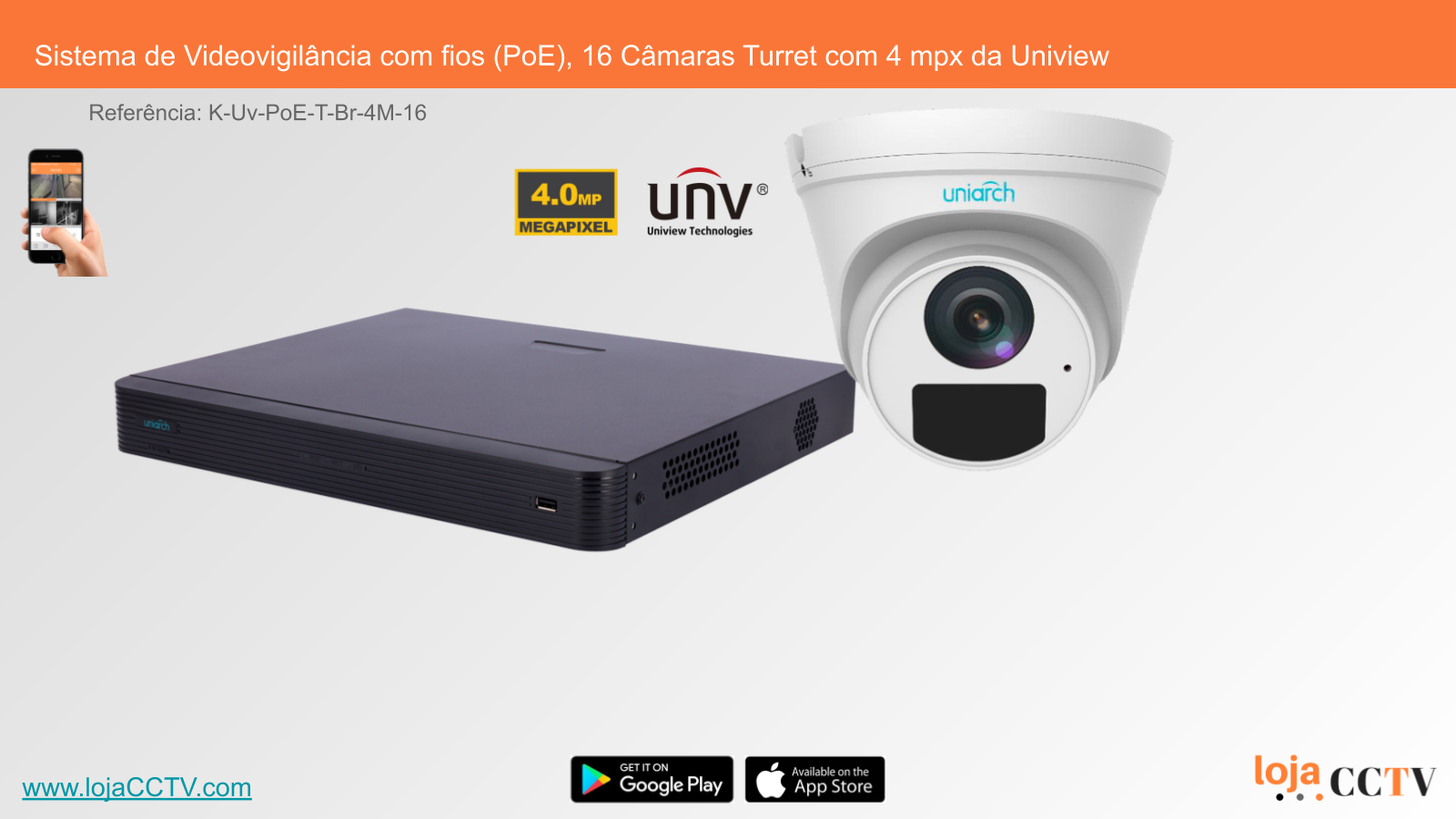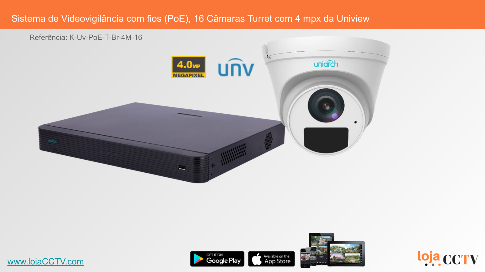 Sistema de Videovigilância com fios (PoE), 16 Câmaras Turret com 4 mpx da Uniview