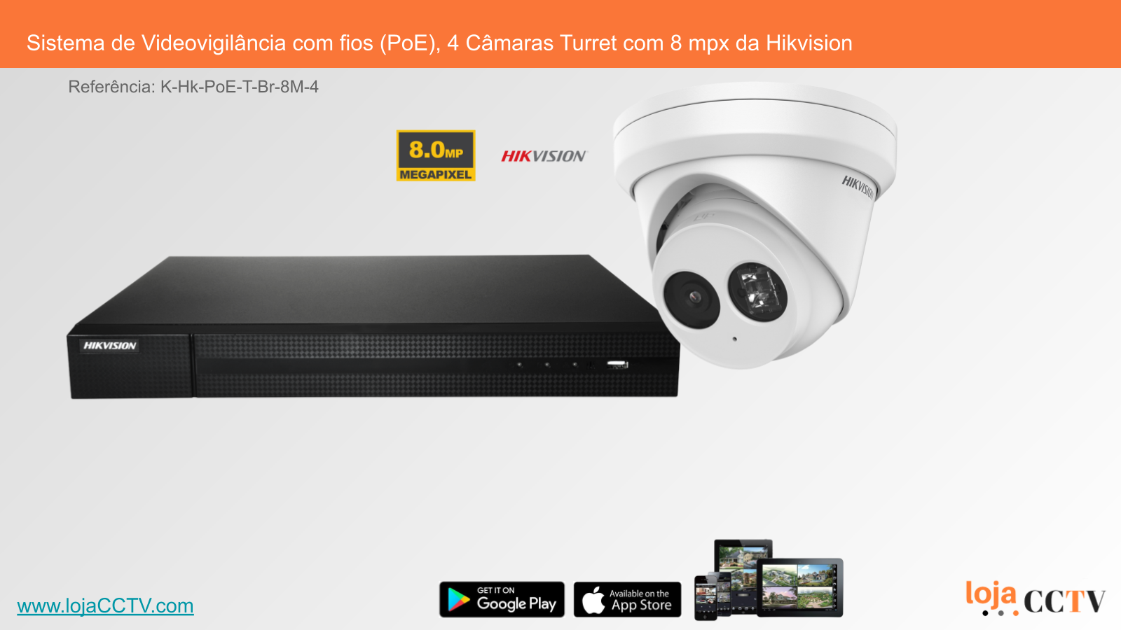 Sistema de Videovigilância com fios (PoE), 4 Câmaras Turret com 8 mpx da Hikvision