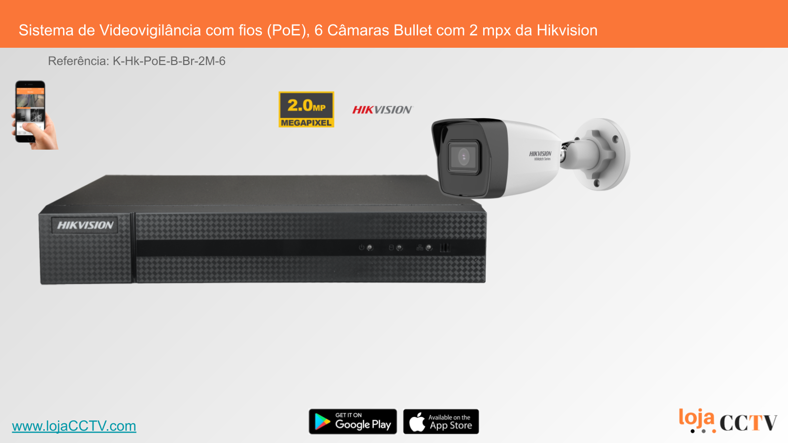 Sistema de Videovigilância com fios (PoE), 6 Câmaras Bullet com 2 mpx da Hikvision